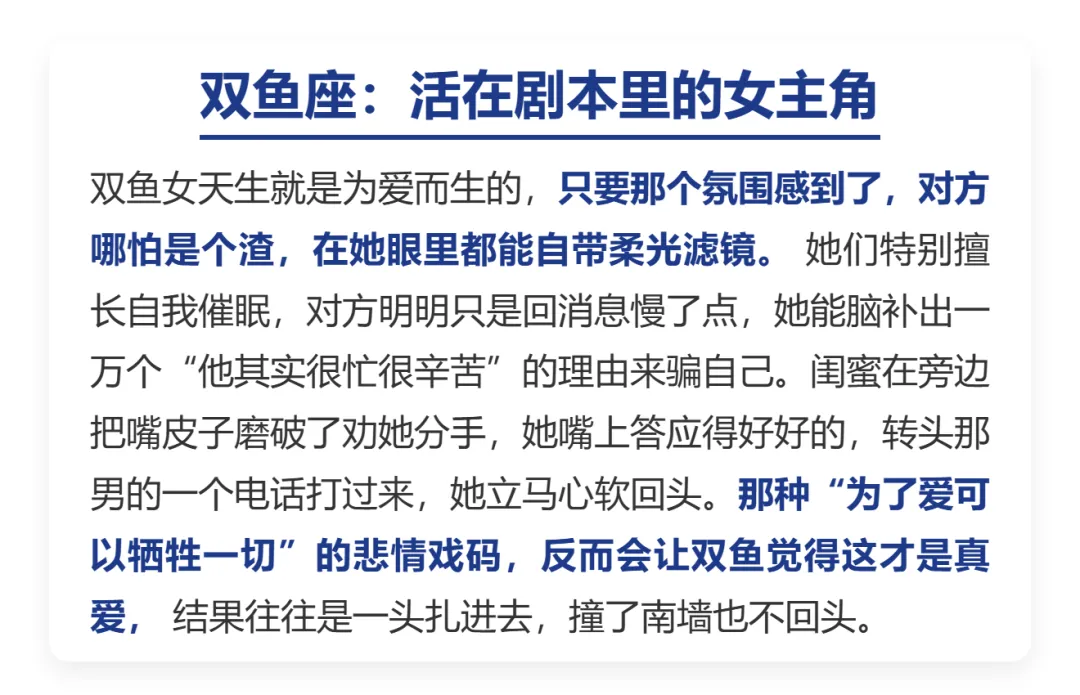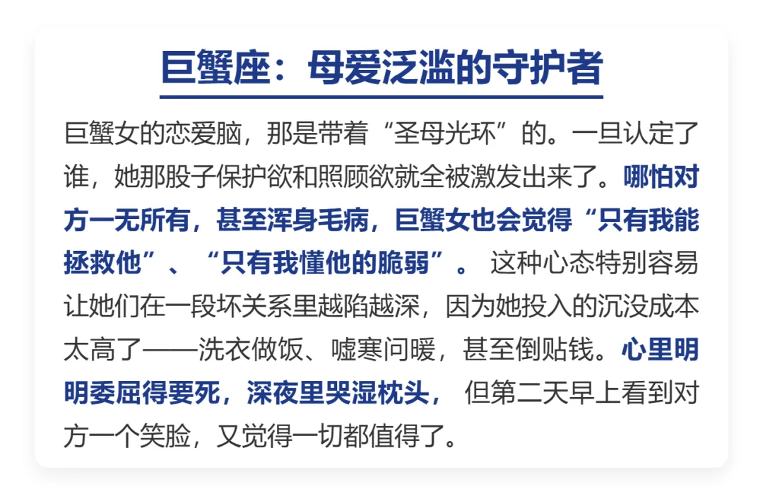 感情里.有种特别.让人心疼.的傻姑娘,平时.看着精明.能干,可一旦动.了心,智商瞬.间清零。这真.不是因为.她们蠢,而是因.为她们.太重感.情、太相信.直觉,愿意.为了.那一点.点甜,赌上全.部身.家性命。今天咱.们就.来唠.唠,哪三个.星座的.姑娘,爱起.来最.容易“不管不.顾”。