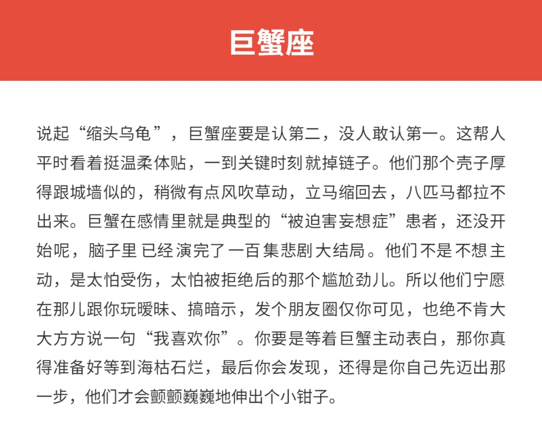 >巨蟹座:恋爱时,最不容易主动的星座!