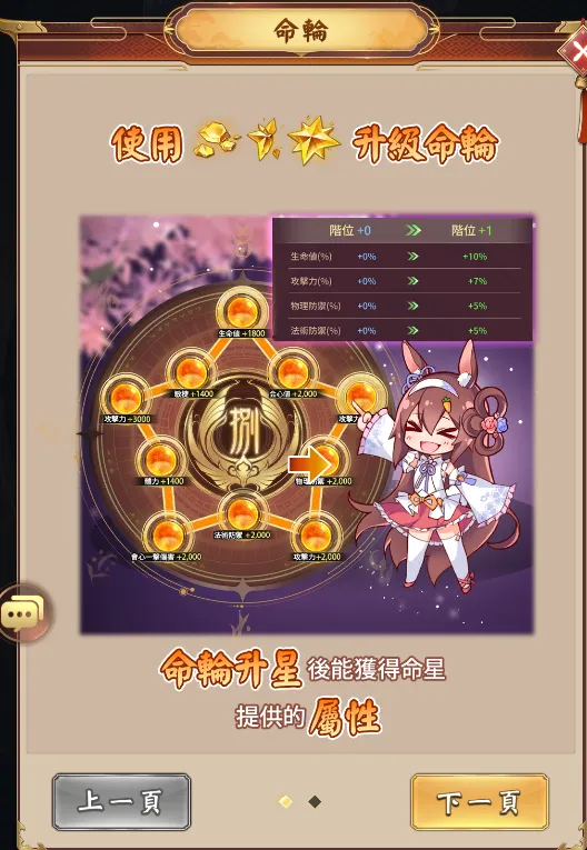 从截图中我们可以看到,角色界面充满了精致的细节。无论是角色立绘的呈现,还是“命轮”系统带来的属性加成(如生命值、攻击力、物理防御等百分比提升),都预示着这将是一场兼具策略与养成的深度冒险。每一个“+6”的命轮位,都可能成为你征战沙场的关键助力。