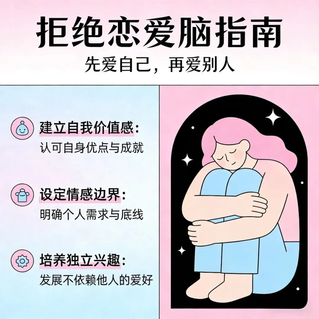 好的爱情,是两个独立灵魂的相互吸引,而非一方对另一方的盲目依附。拒绝恋爱脑,从来不是不相信爱,而是懂得先爱自己,再爱别人,把人生的主动权牢牢握在自己手中。
