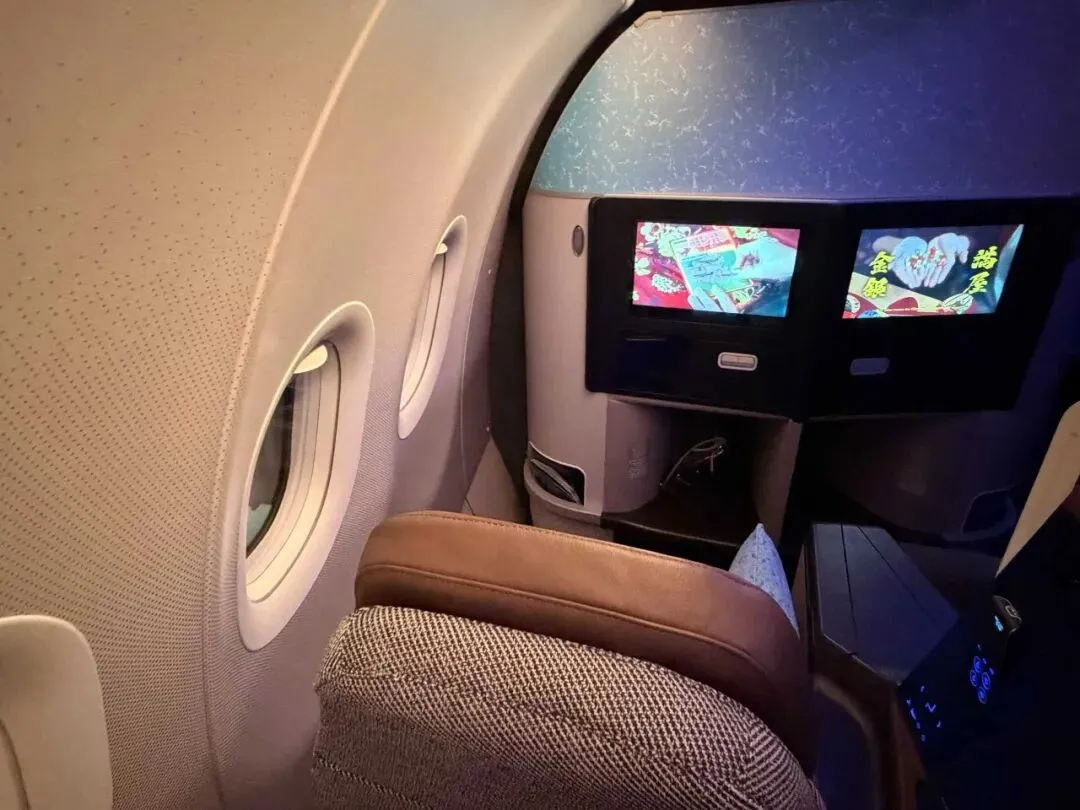 好像第一次坐中华航空这个机型,虽然是中型机,但是坐了平躺的商务舱诶,有点儿厉害,