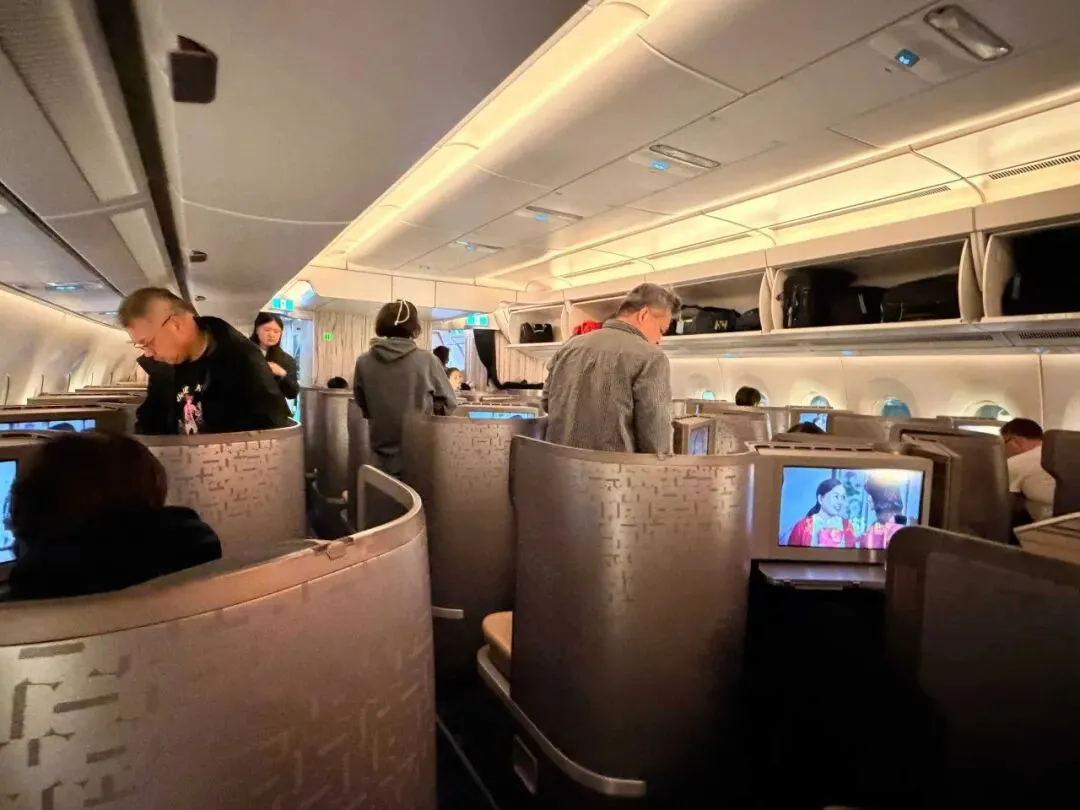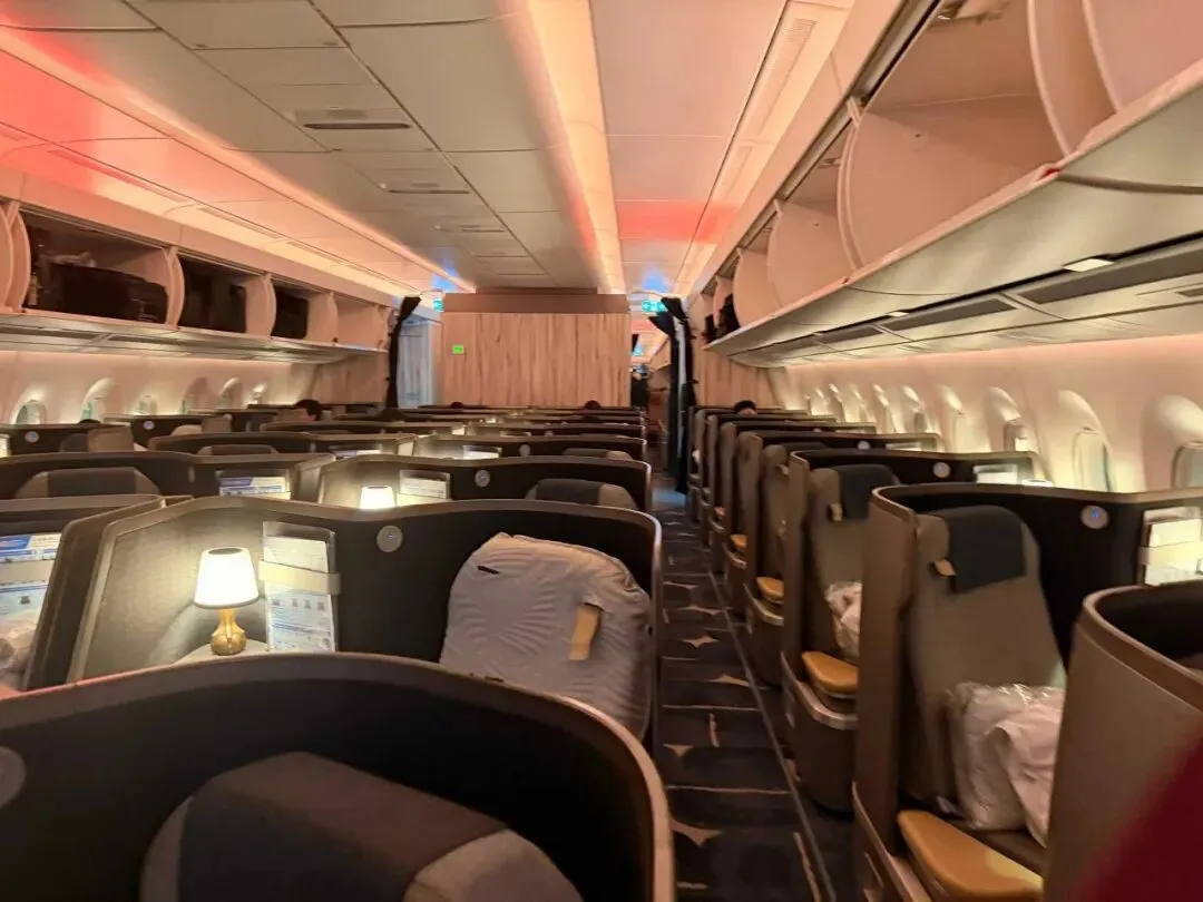 牺牲了过道的宽度,用设计让商务舱的一排 4 个座位,有了很大的私密性和舒适性,不知道是不是他们的最新机型。