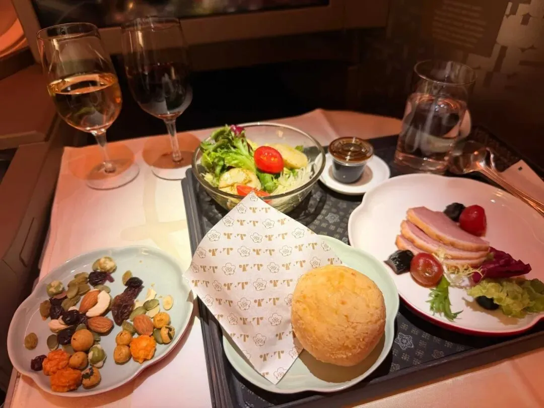 登陆中华航空从台北到旧金山的商务舱,感觉比长荣航空要好诶,就是那种正统的台湾版国航。