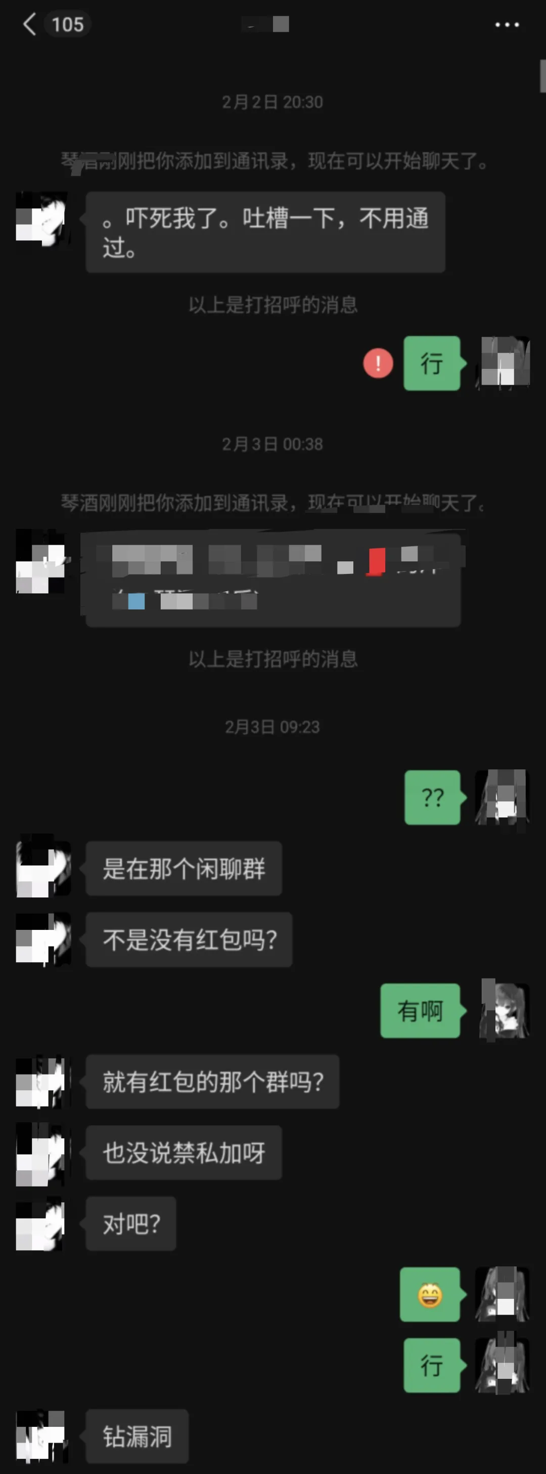 本以为事情到这里就结束了,没想到仅仅过了一天,琴酒再次主动添加灼冬,还声称自己的这种行为是“钻漏洞”,丝毫没有意识到自己已经违反了俱乐部规定,也没有顾及到私联女陪的不妥之处。