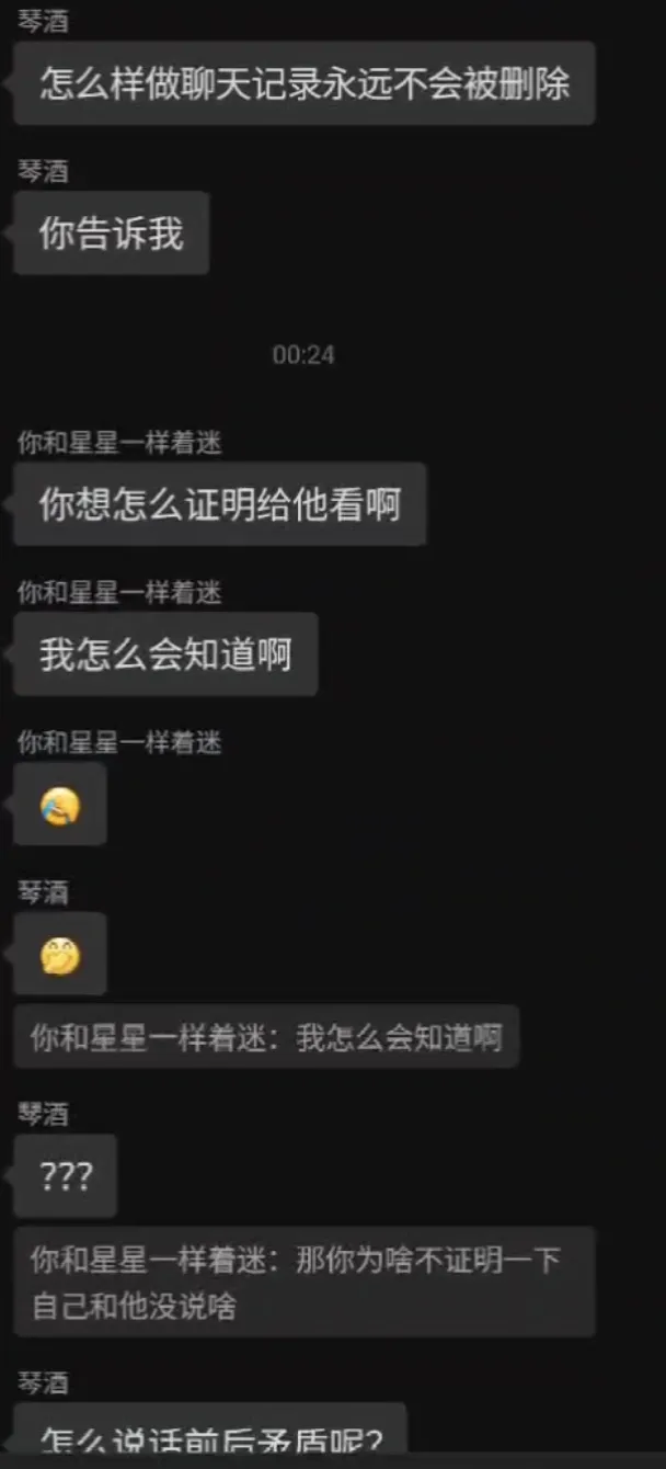 随着事情的深入,还有一个细节被曝光:琴酒的好友列表里,有多名女生,而且这些女生都添加过逢春的微信。也就是说,逢春其实一直知道琴酒身边有其他异性,但始终选择信任,直到此次私加女陪的事情爆发,才彻底看清真相。