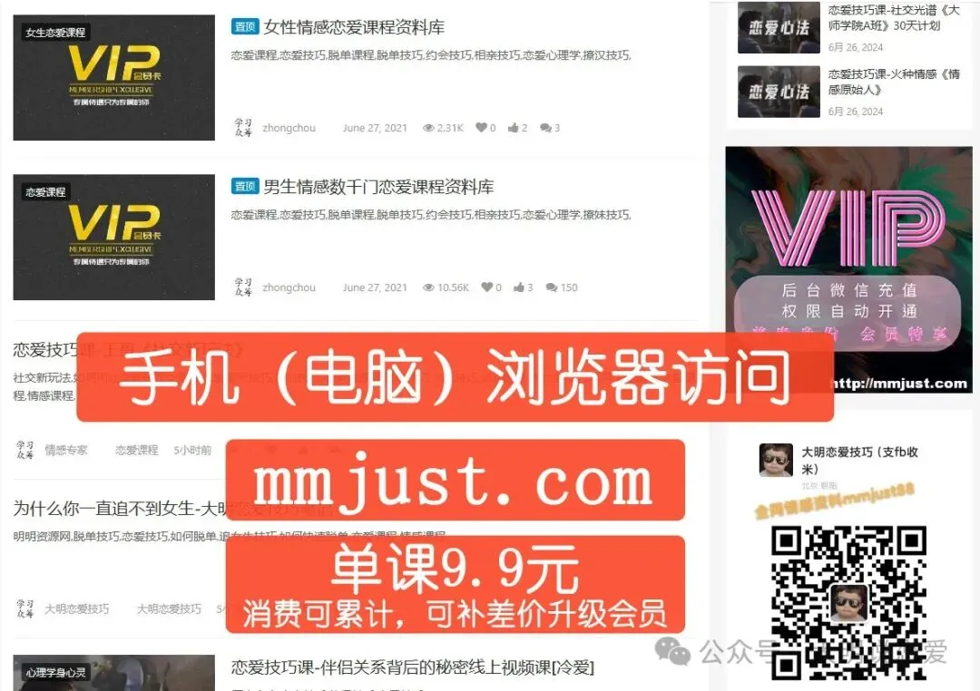 全网恋爱课程一网打尽,从2015年至今的几乎所有课程都在里面,且每月仍在持续上新中: