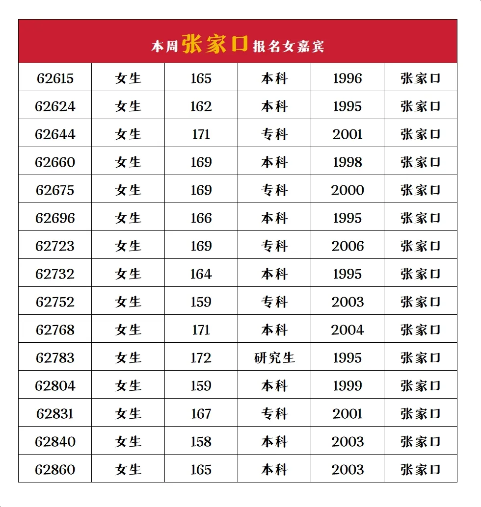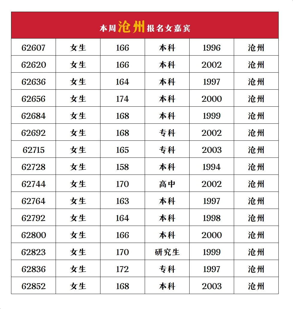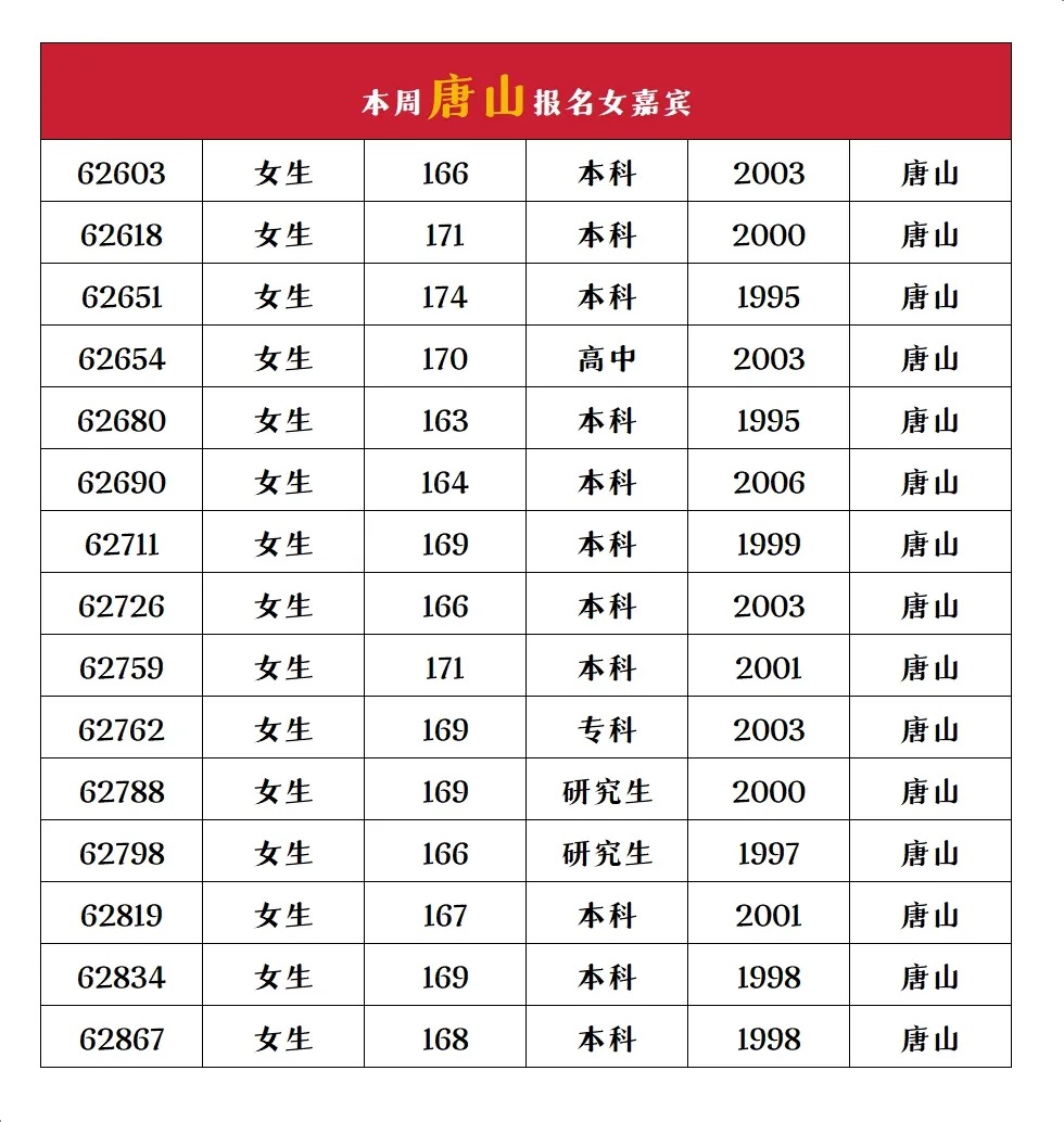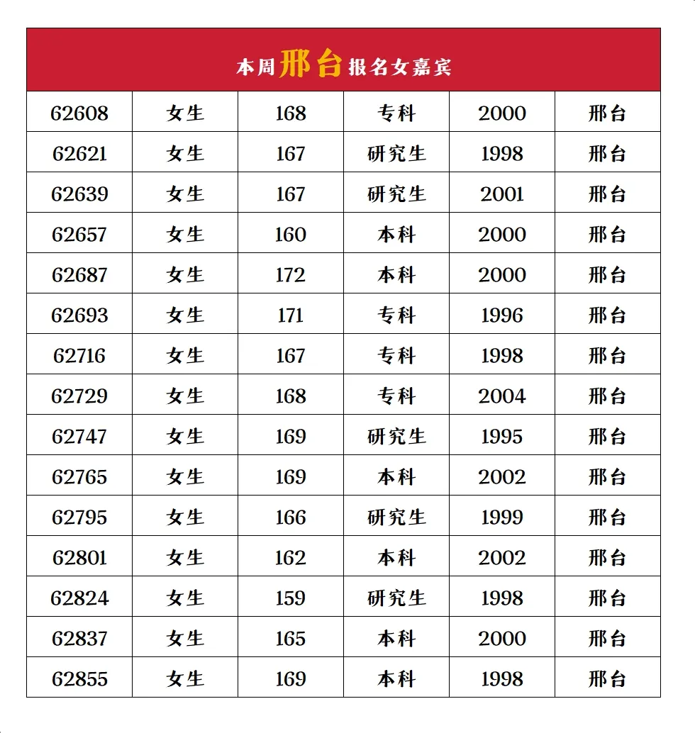 本期恋爱匹配已报名嘉宾,篇幅有限,每个城市仅展示部分嘉宾,目前河北开放城市:石家庄、保定、唐山、邯郸、沧州、邢台、廊坊、衡水、张家口。