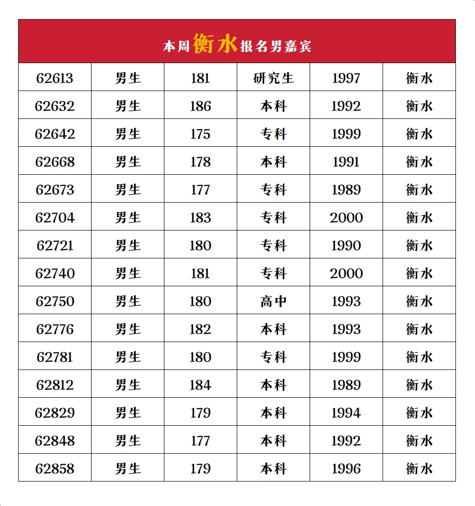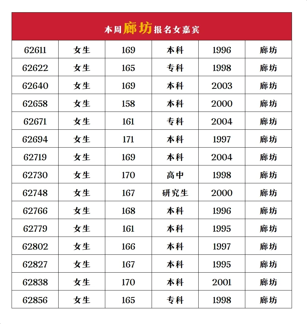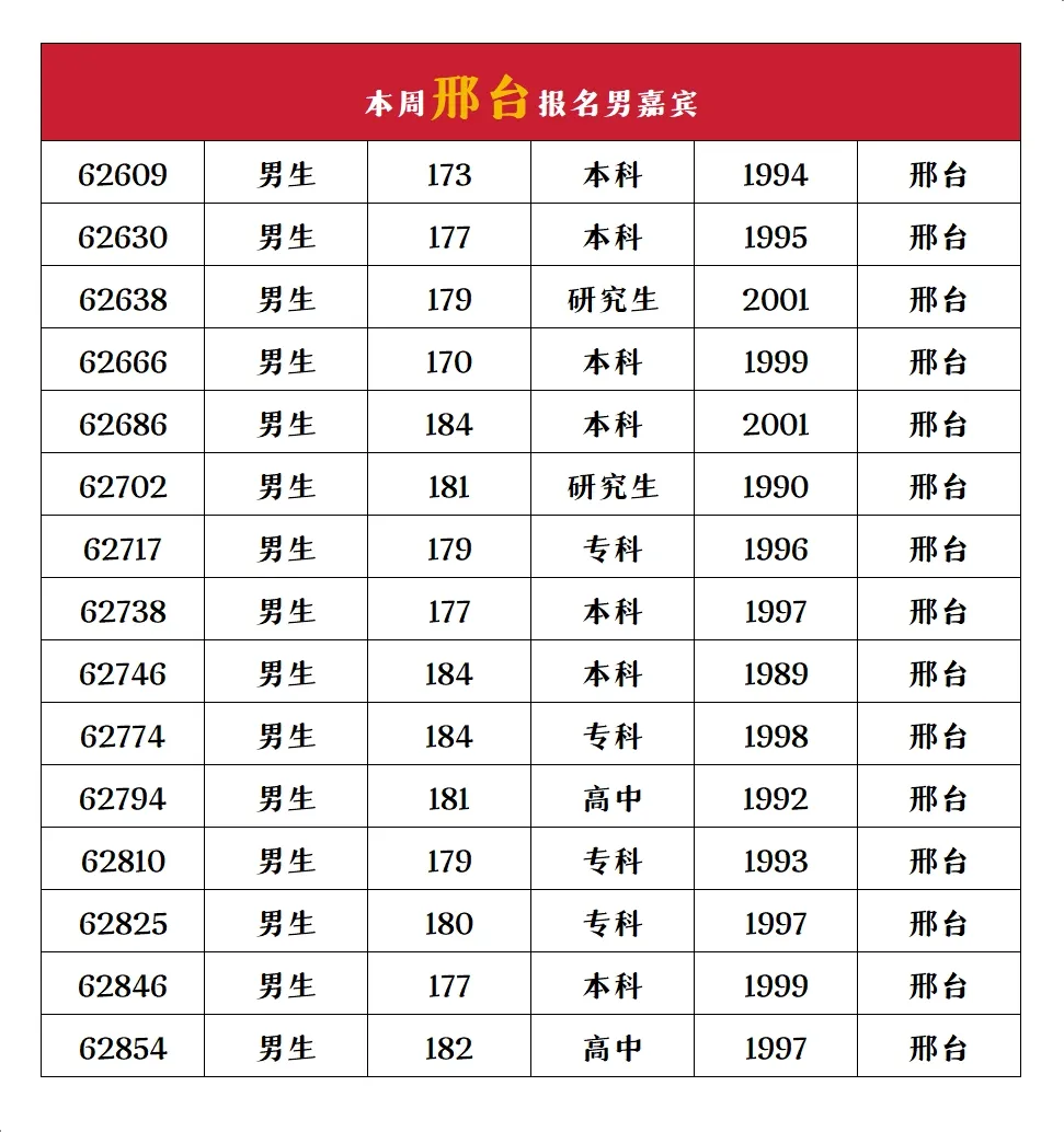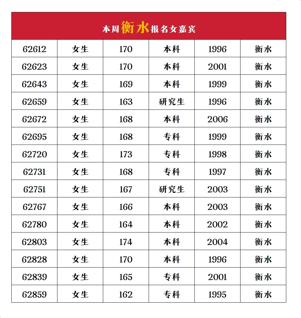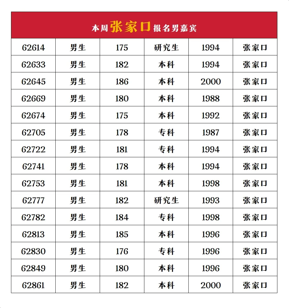本期恋爱匹配已报名嘉宾,篇幅有限,每个城市仅展示部分嘉宾,目前河北开放城市:石家庄、保定、唐山、邯郸、沧州、邢台、廊坊、衡水、张家口。