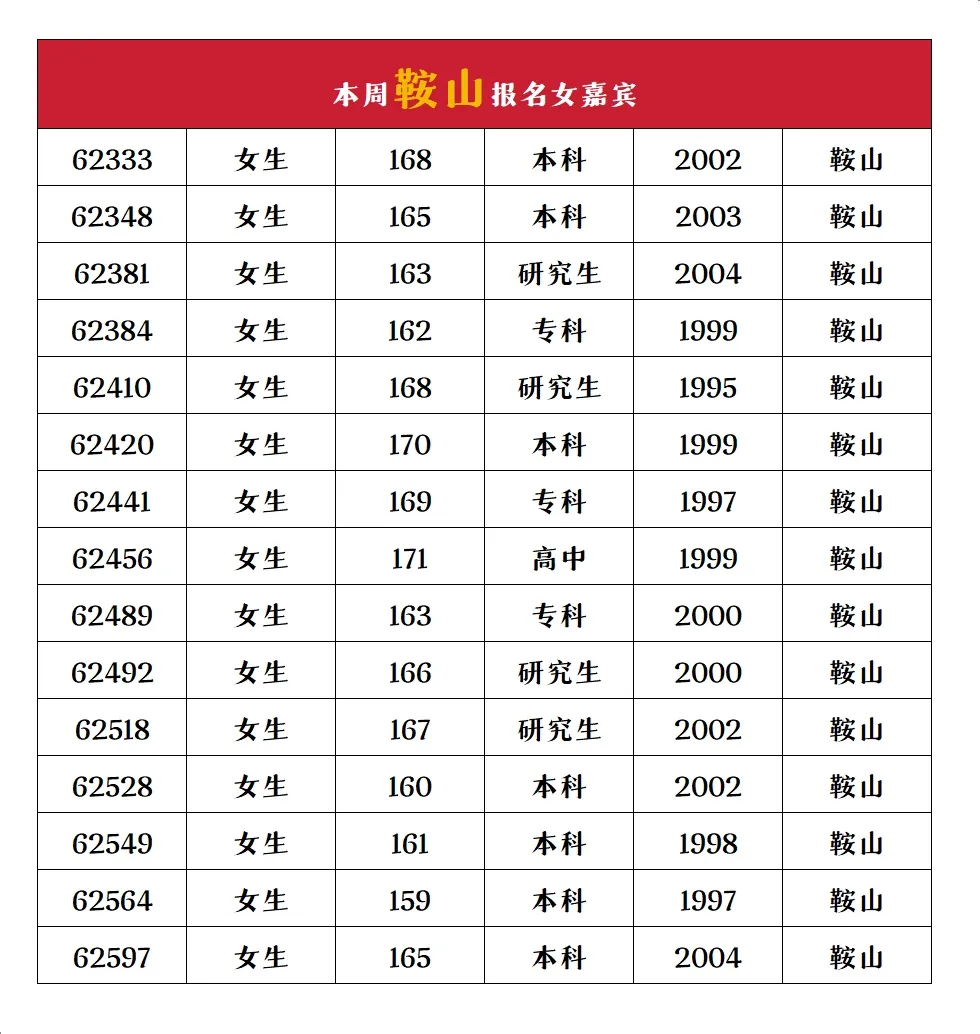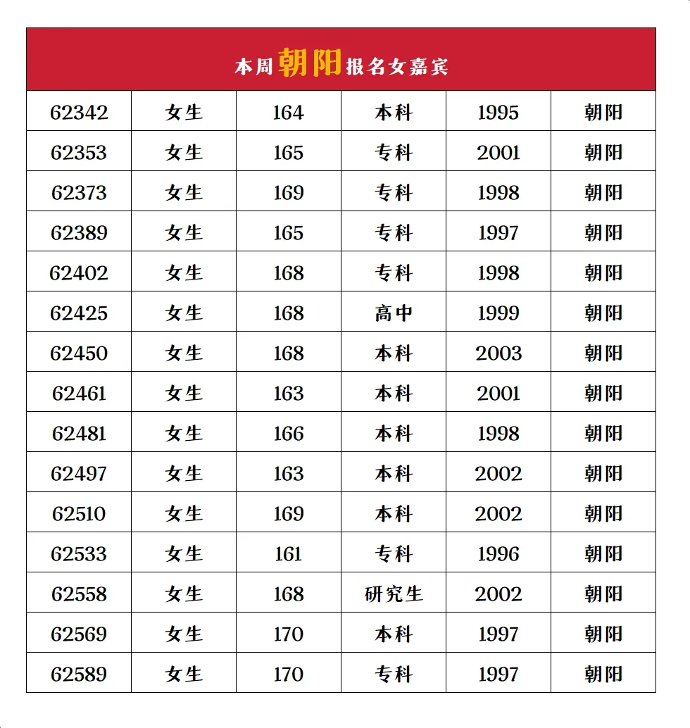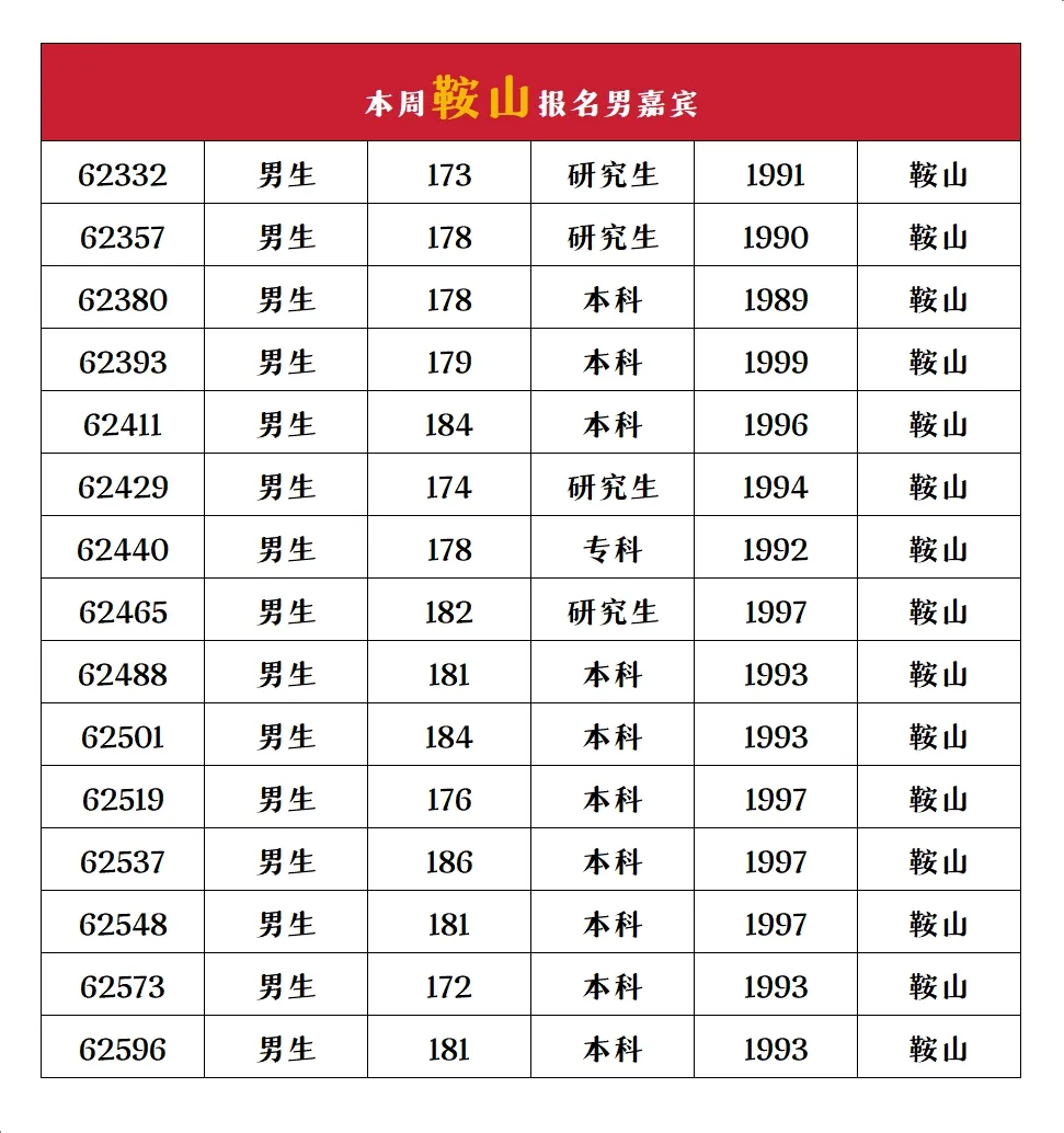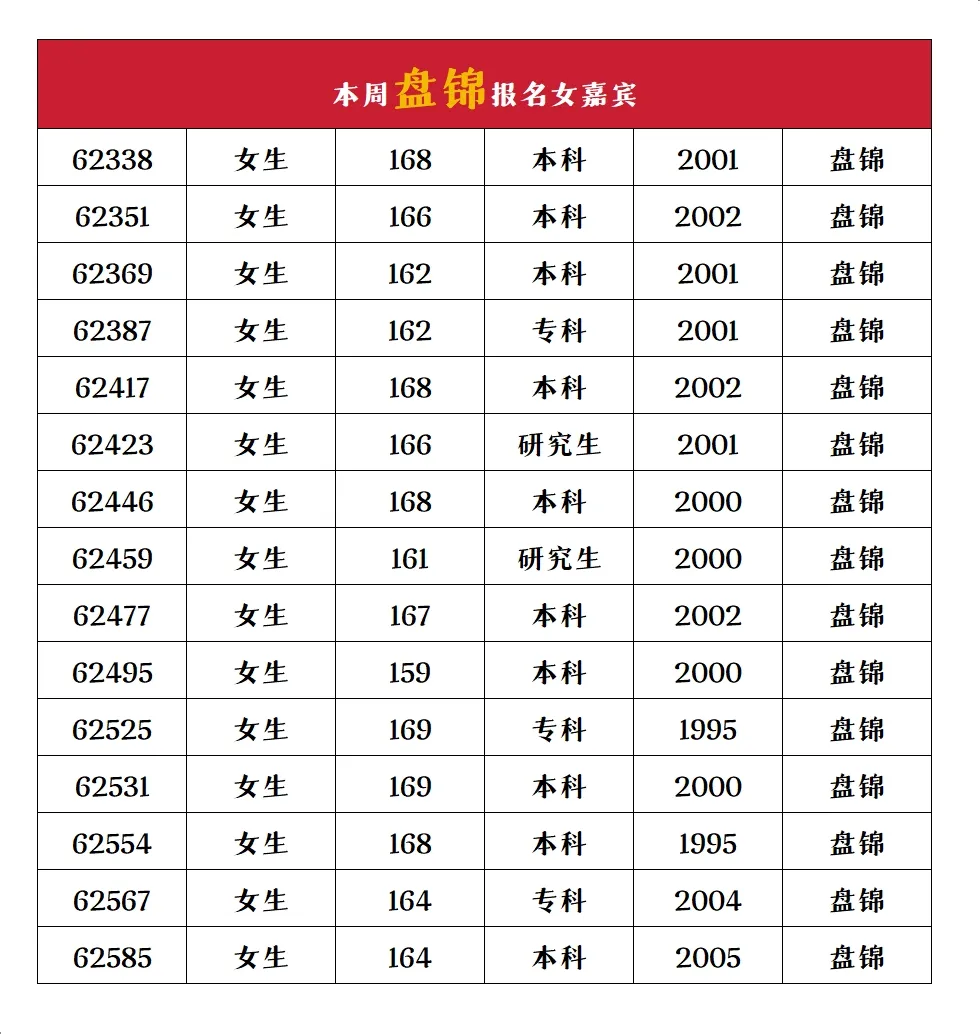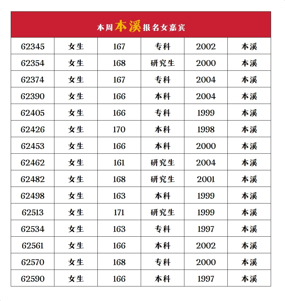 本期恋爱匹配已报名嘉宾,篇幅有限,每个城市仅展示部分嘉宾,目前辽宁开放城市:沈阳、大连、鞍山、盘锦、锦州、营口、朝阳、本溪、抚顺
