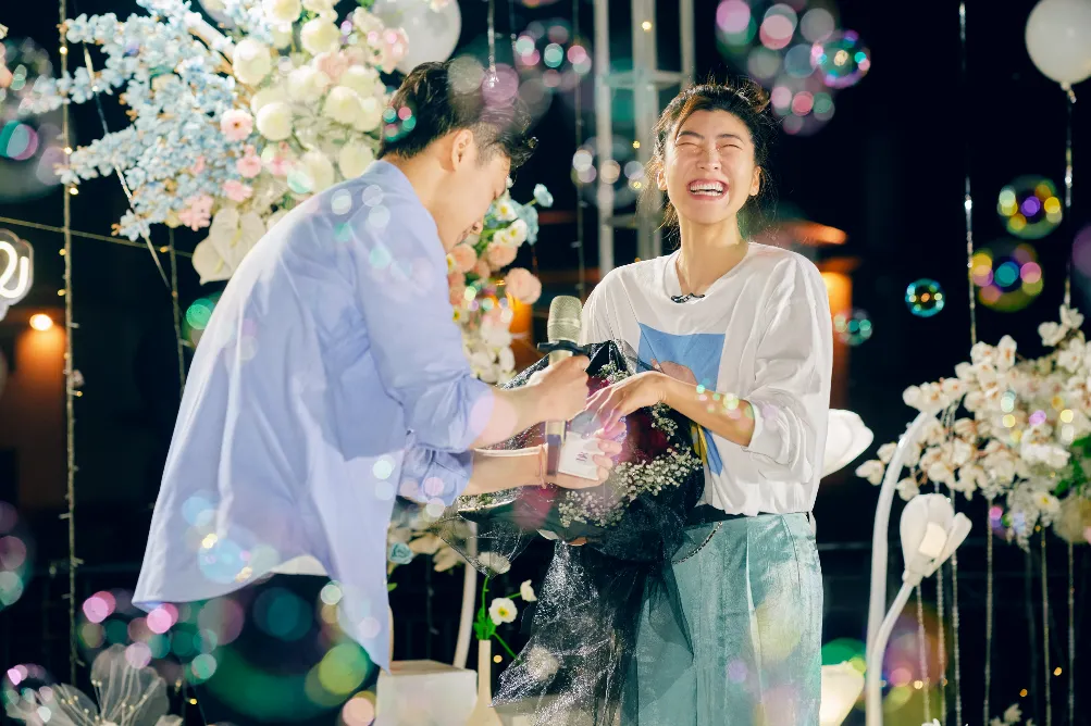 看向王心迪,徐梦桃早已泪眼婆娑。王心迪温柔地带着她走向特意装饰的领奖台,在众人的见证下,他单膝跪地,拿出准备许久的DR钻戒深情款款地向心爱的桃桃告白:选择DR,正是因为象征着你是我的唯一!因为它一生只送一个人。