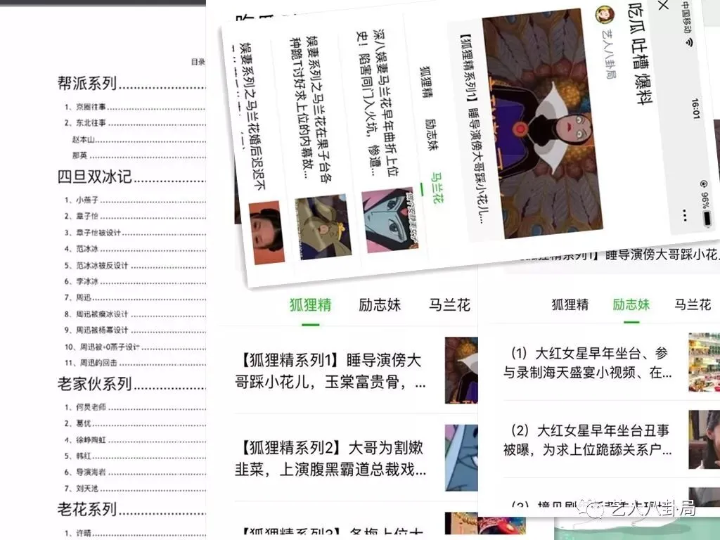 当然,局长那里还有更多更劲爆的娱乐八卦猛料、未解之谜,《被反噬的狐狸精女演员》,娱妻马兰花,励志妹,九亿姐 ,豪门系列 小花系列等等::最 想看谁的好后台告诉局长。