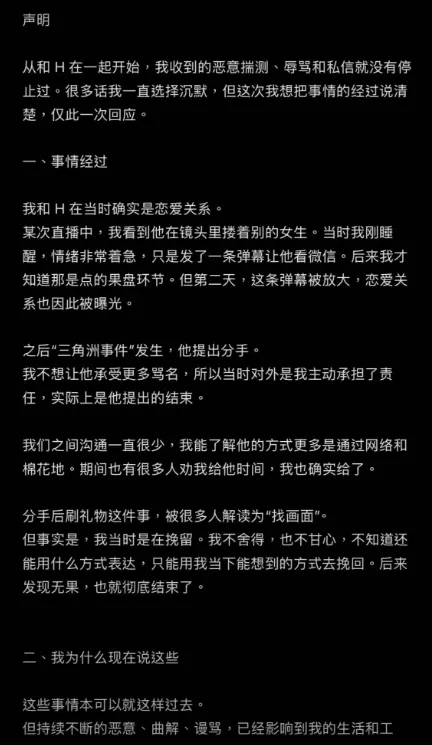 近期,电棍的感情状况一直牵动着不少水友的目光。在前一段感情受挫后,他与严姐迅速走到一起,可这段恋情并没有维持太久,两人很快便宣告分手。本以为这件事会就此翻篇,没想到昨天严姐突然在某音发布长文说明情况。