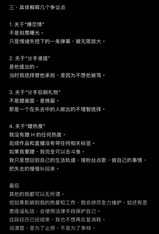 电棍感慨说:感情的事情本来就说不清楚,这些弹幕像在审判自己一样,我觉得很不自在。感情里哪有对错?你们说我对不起这个、对不起那个,我只能说我对得起自己!