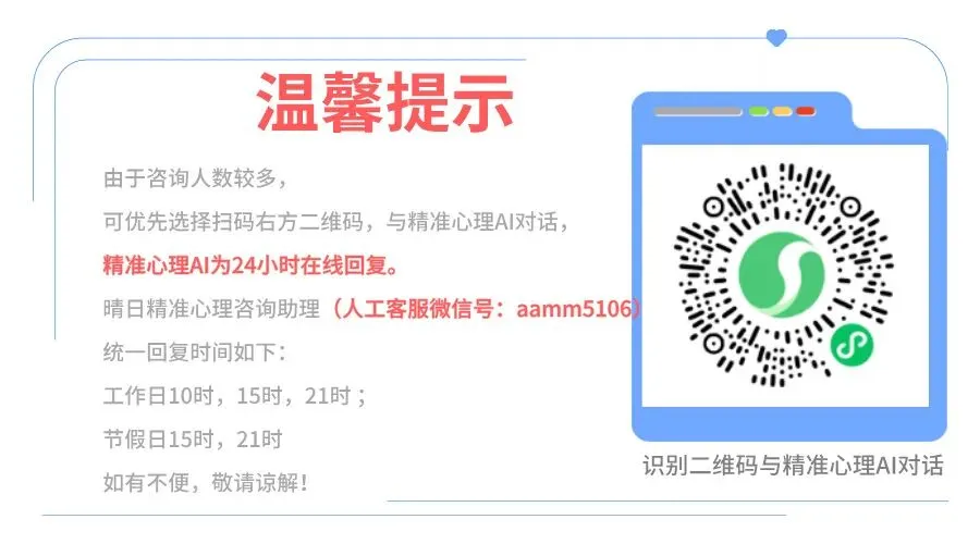 本文版权为【晴日精准心理】 公众号所有,如需转载需在文章开头注明转自晴日精准心理公众号、作者何日辉。