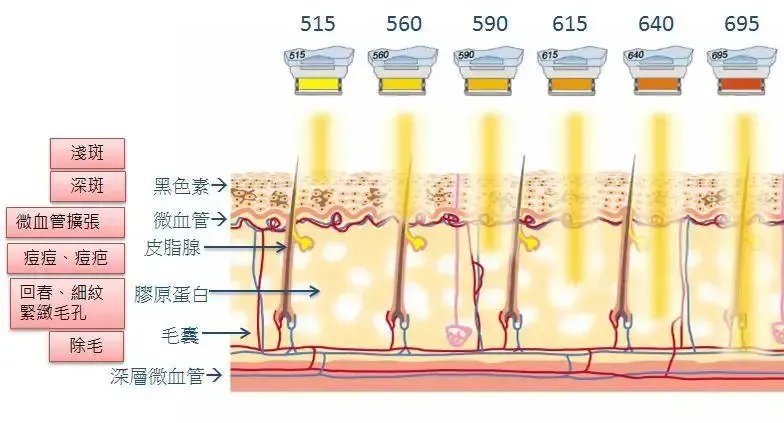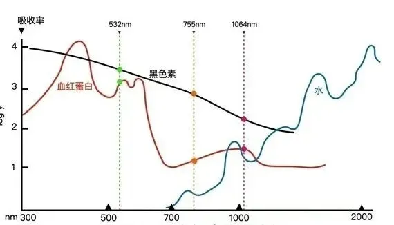简单说,就是特定波长的光会被皮肤中对应的靶组织(比如黑色素、血红蛋白、水等)优先吸收。