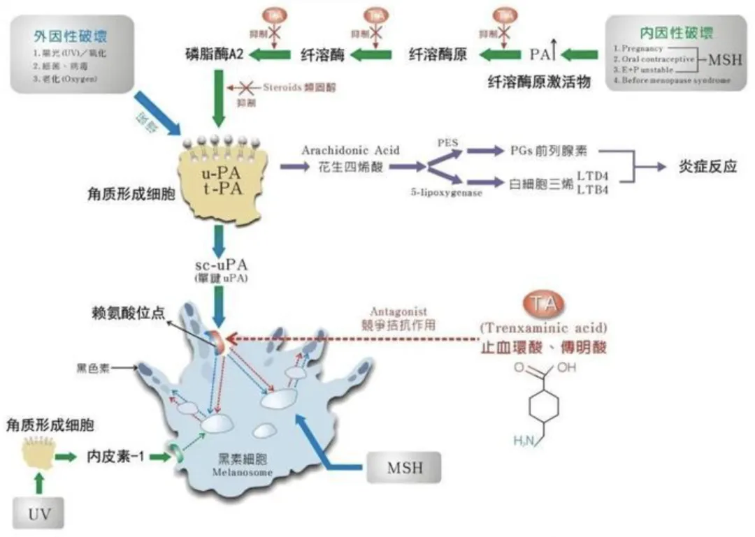 大部分美白水光(比如英诺小棕瓶、杏枝山)主要依靠以下三张王牌:1.氨甲环酸: