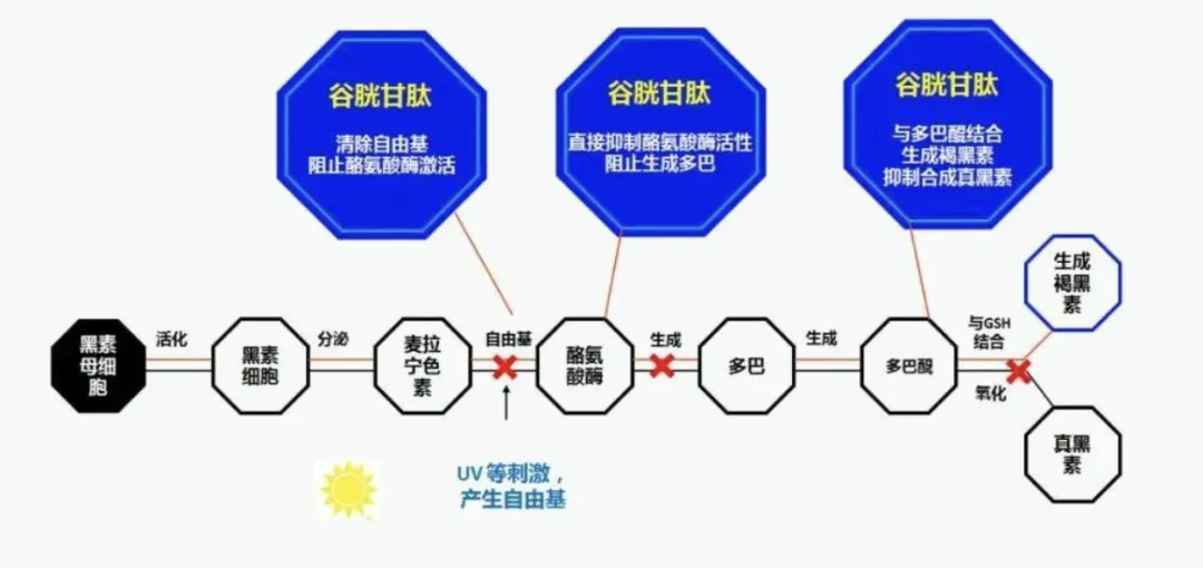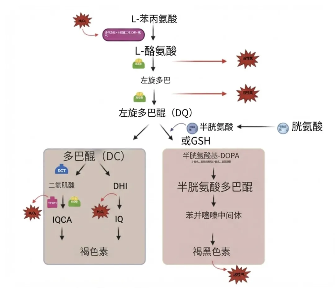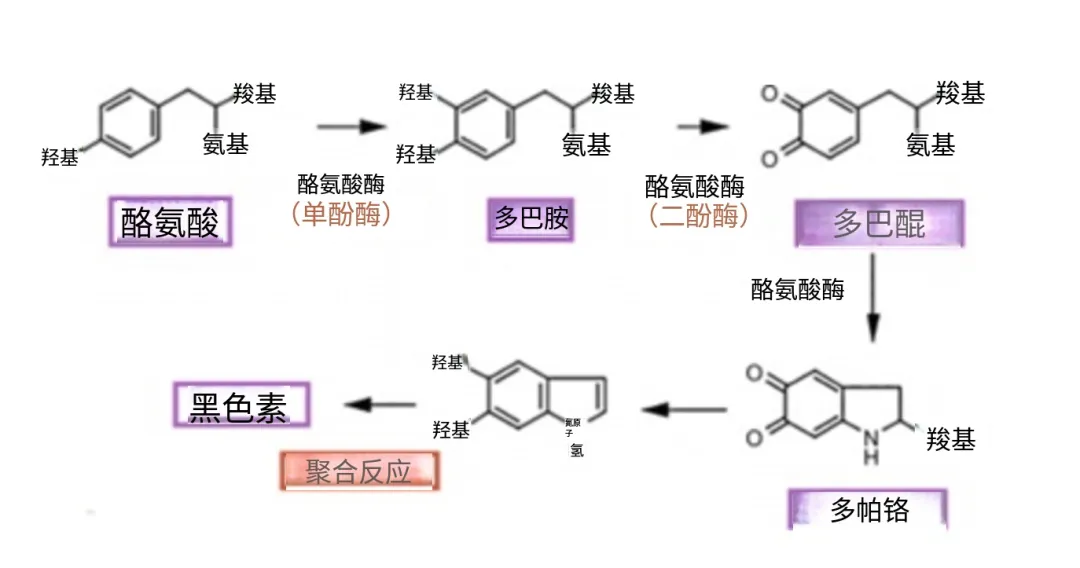 第一条——黑色素链条,这是大家最熟悉的“变黑”过程。