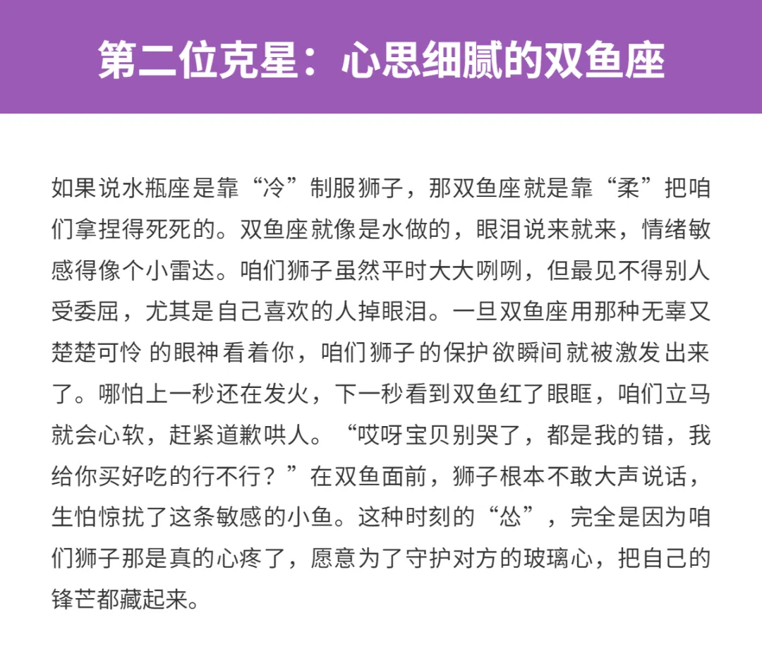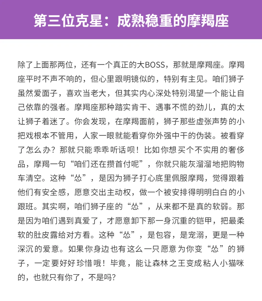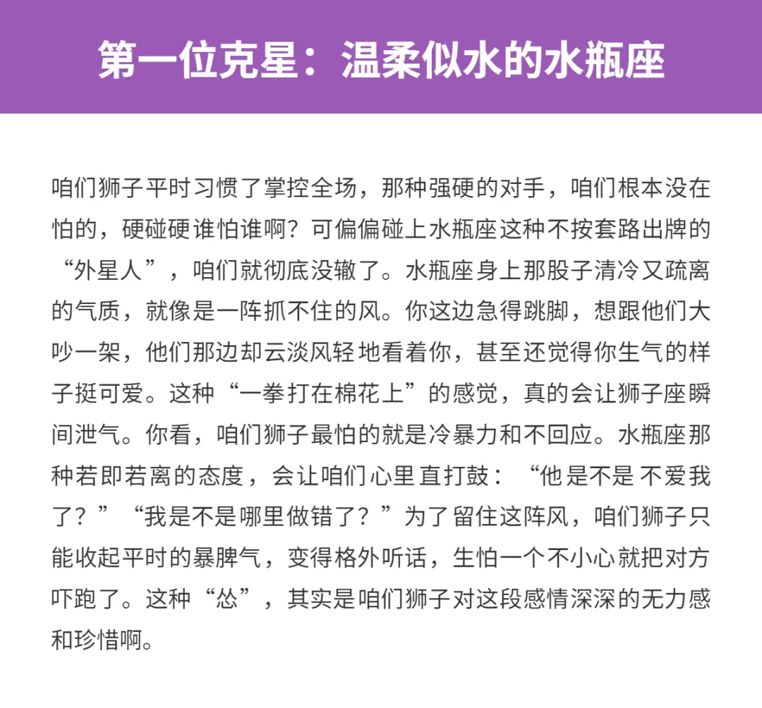 今儿咱们就来聊聊,到底是哪几位大神,能让天不怕地不怕的狮子座,心甘情愿地收起爪子,乖乖认怂呢?