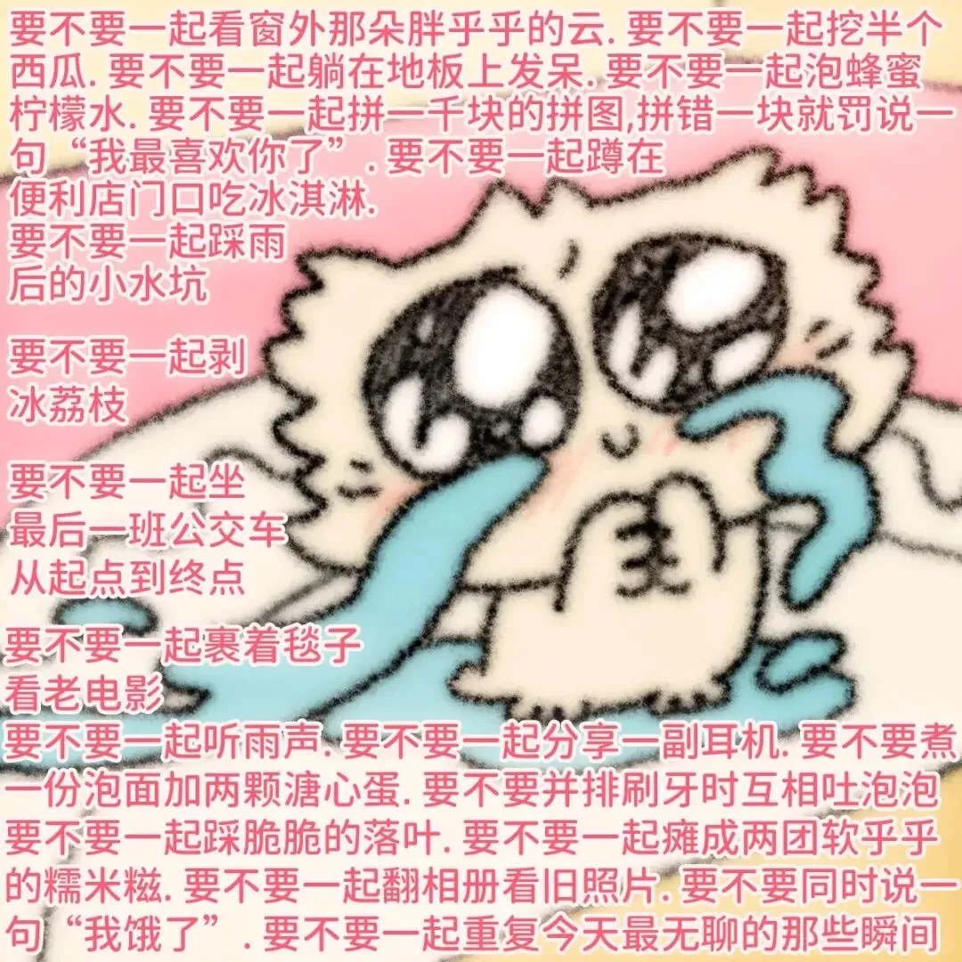 某个深夜,朋友突然发来她和男友的聊天截图。没有哲学讨论,全是幼稚的废话:云朵像恐龙,奶茶少糖还是半糖,路上看见的松鼠有没有尾巴。可她说这些时语音里带笑,那种轻松我在任何一本“深刻”的书里都没见过。