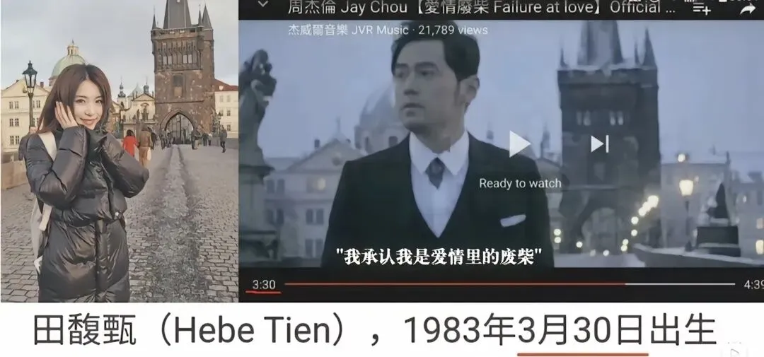 网传版本是这样的:23岁的田馥甄去英国游学,27岁的周杰伦去伦敦拍《夜的第七章》MV。