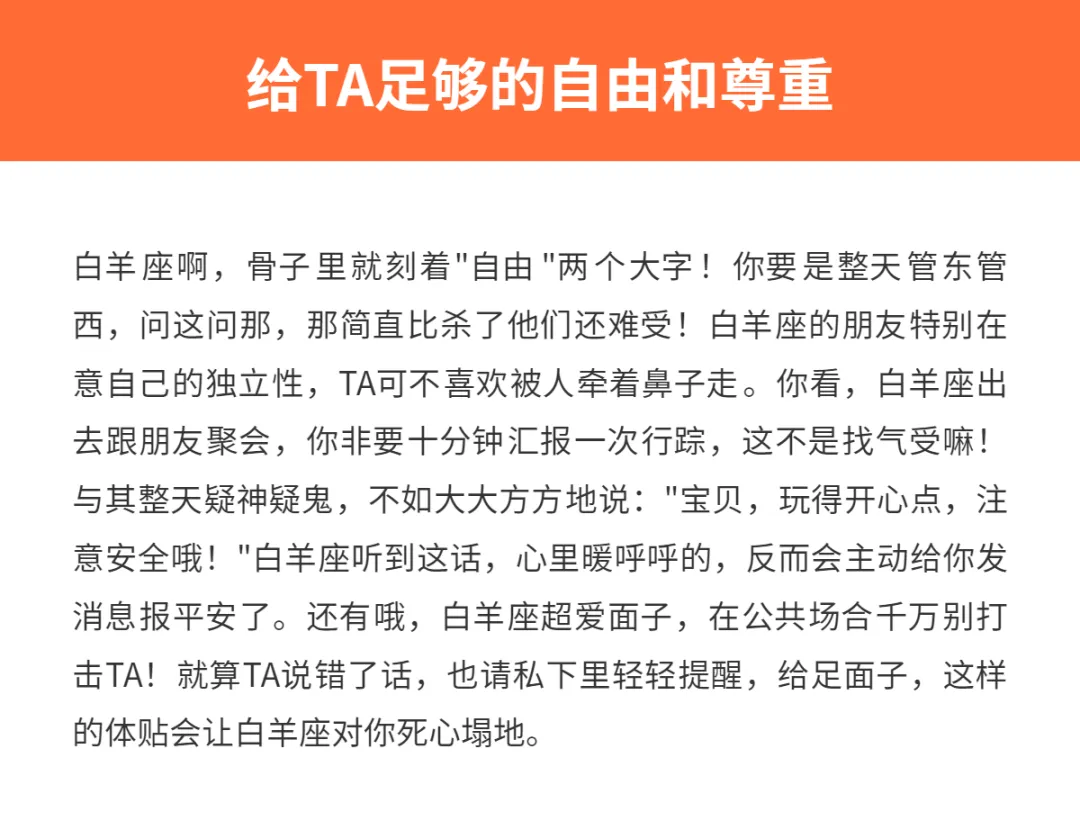 白羊座的心,其实很简单,就像一个长不大的孩子,需要你的理解,更需要你的宠爱和尊重。