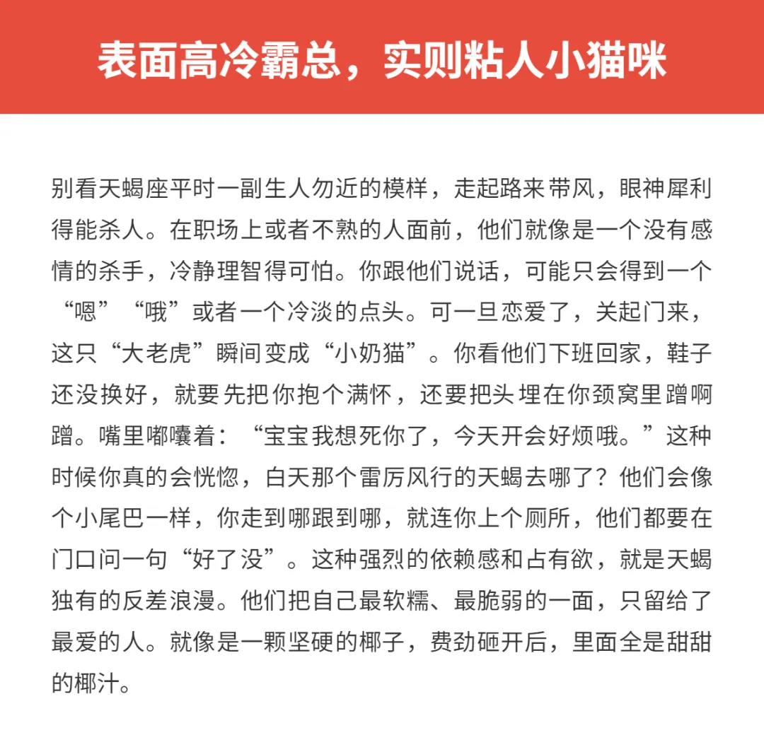 今天咱们就来扒一扒,为什么说天蝎座是恋爱中反差最大的星座,看完你绝对会心疼又心动。