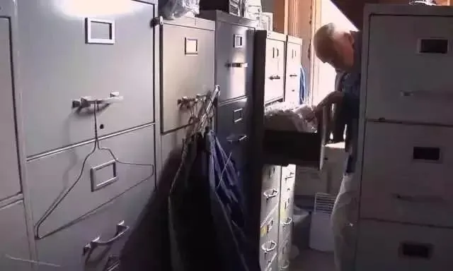 和两个他储存50多年来照片的铁皮柜。