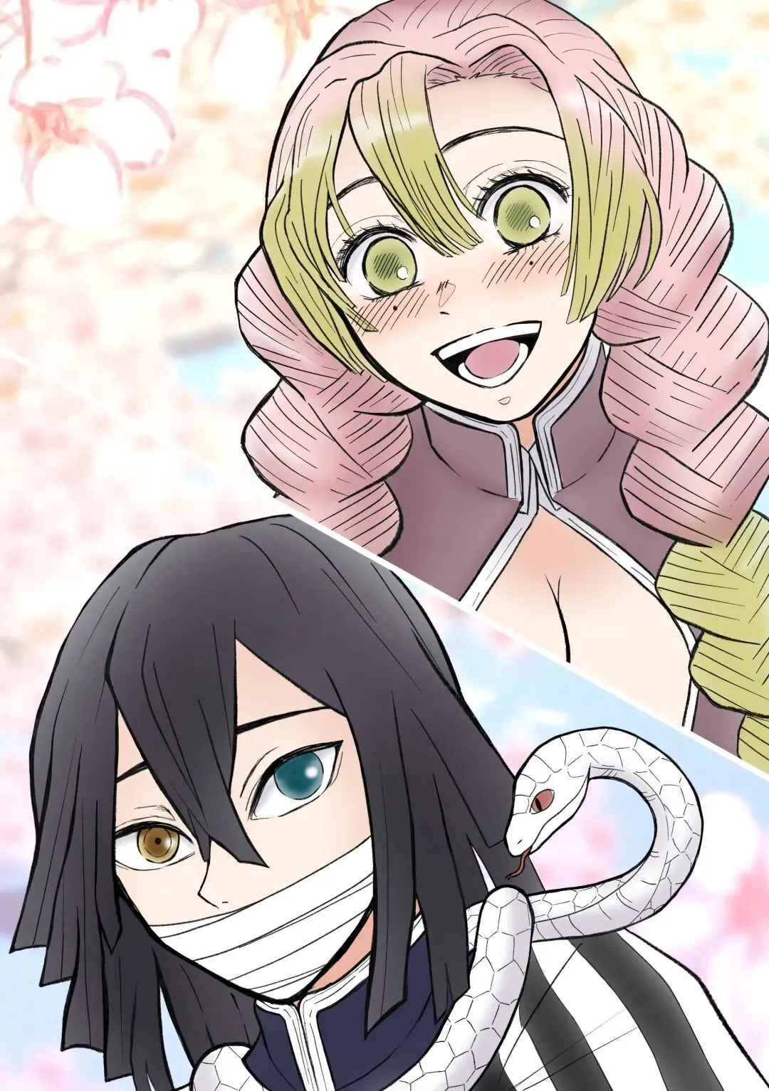 他(伊黑先生)虽然总用绷带遮住半张脸,沉默寡言,却会在她(甘露寺蜜璃)遇到危险时,第一时间挡在身前;她有着粉金渐变的卷发和治愈的笑容,看似大大咧咧,却唯独能看穿他眼底的温柔。