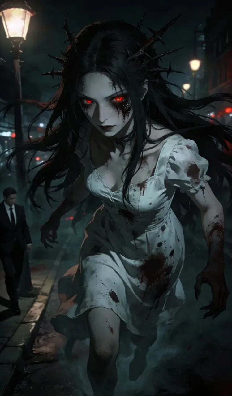 13. 含冤而死的女郎怨气不散,化为凶狠厉鬼,眼中满是恨意,四处搜寻欺骗她的西装男人。
