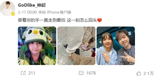 看着这些陪伴我们青春的选手们一个个找到幸福,说不感慨是假的但更多的还是祝福,希望神超和小柠檬能一直幸福下去就像他官宣时说的那样牵着你的手一直走到最后。