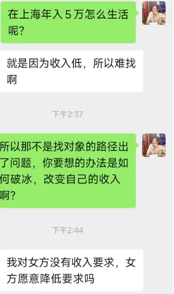 今天把这个真实的故事分享给大家。你怎么看?40 + 在上海年薪 5 万,适合结婚吗?婚姻里,经济条件到底有多重要?欢迎在评论区聊聊你的真实想法。