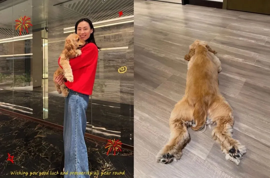也趁着新年晒出了她抱着爱犬的贺年美照