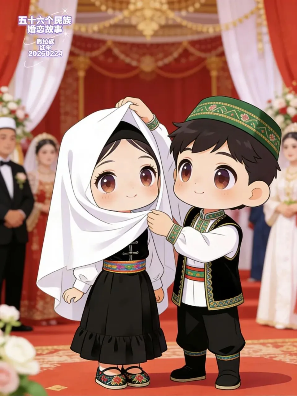 婚礼那天,循化的天空格外蓝。阿娜穿着新嫁衣,头上蒙着白盖头,坐在炕沿上,听着窗外传来的“宴席曲”。哈桑穿着崭新的黑坎肩,头戴绣着花纹的帽子,在亲友的簇拥下,走进了新房。他走到阿娜面前,轻轻掀起了她的盖头。那一刻,阿娜的眼睛像浸在泉水里的黑葡萄,亮得惊人。哈桑看着她,笑着说:“阿娜,以后,我每天都给你送泉水,让你的向日葵,永远朝着太阳开。”