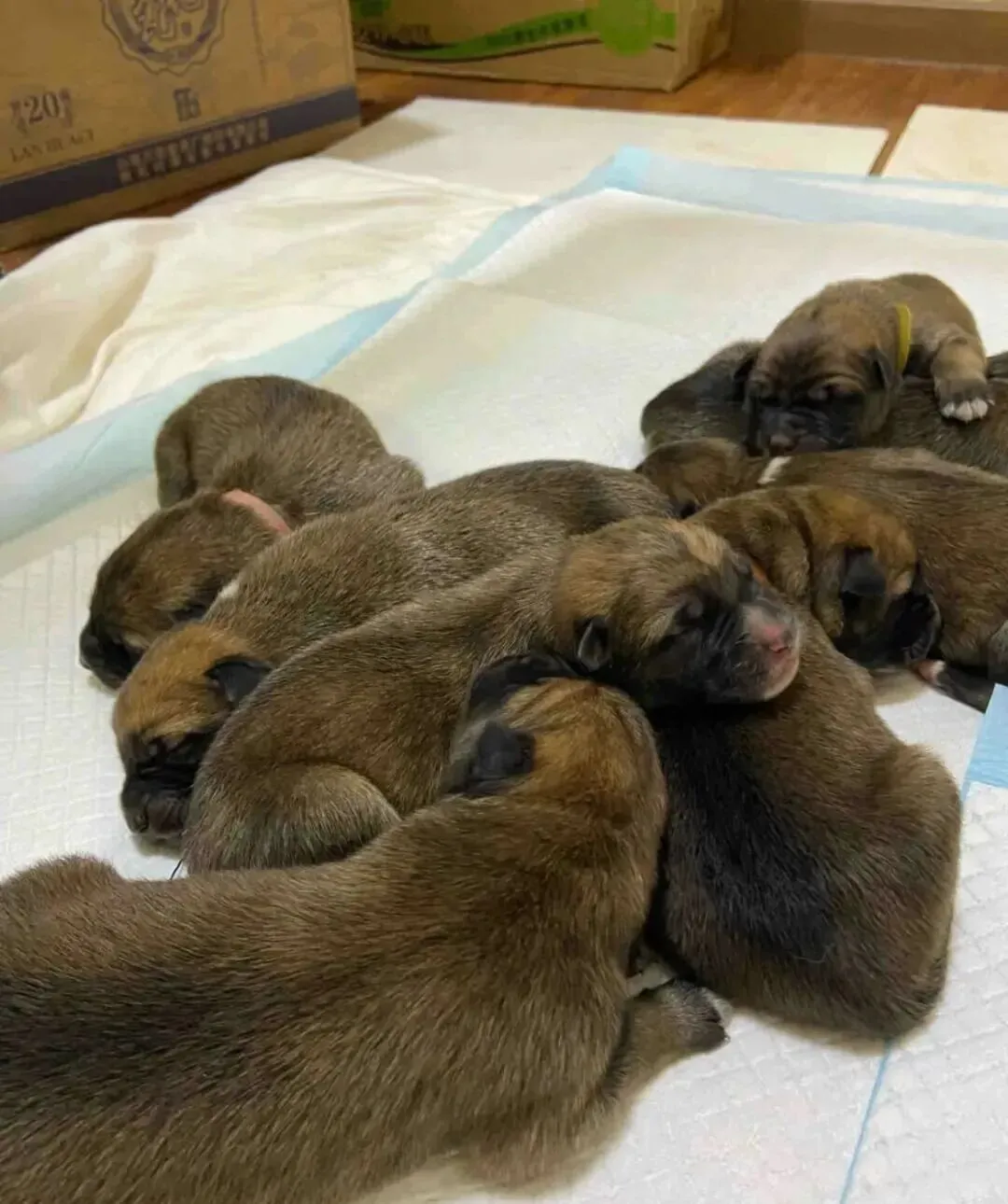 不过主人一直在旁边陪着它鼓励它 , 没想到后面狗子一口气又生了八只!