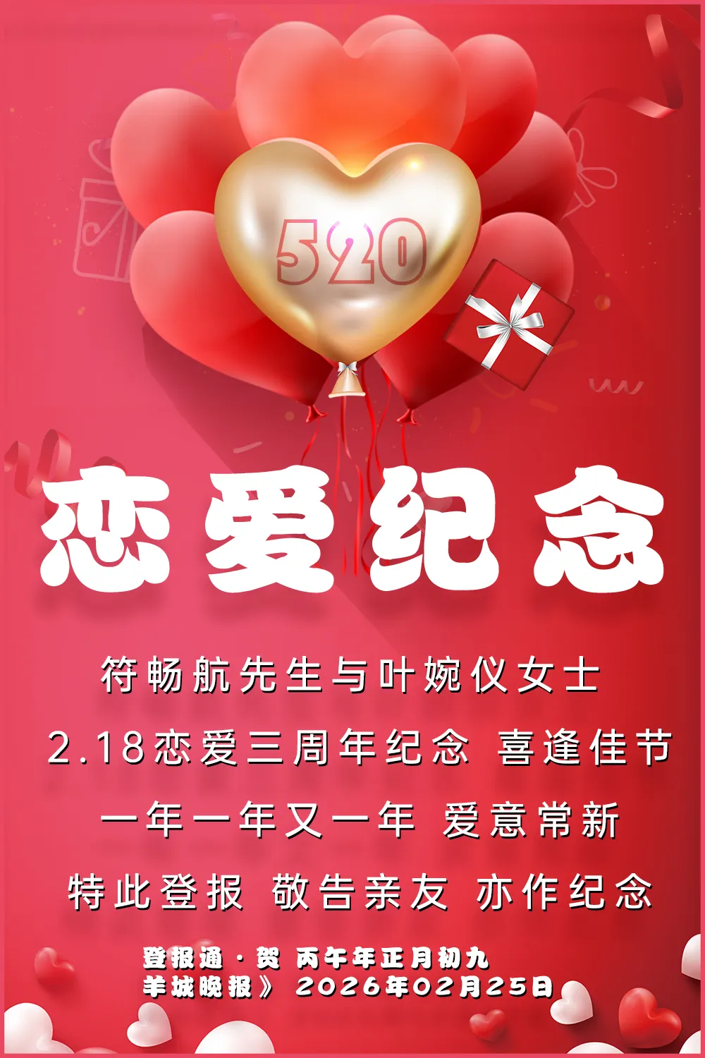 符畅航先生与叶婉仪女士 2.18恋爱三周年纪念 喜逢佳节