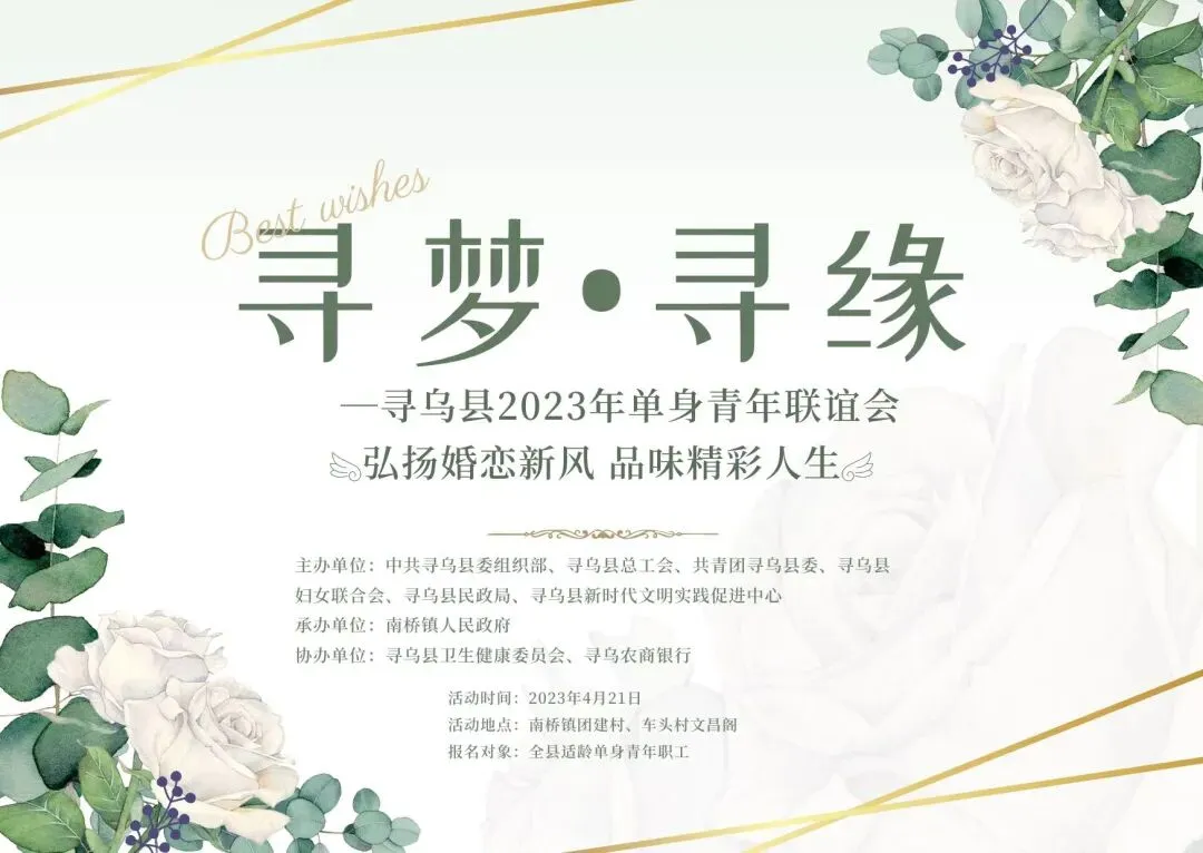 寻梦·寻缘 | @单身青年~“弘扬婚恋新风 品味精彩人生”寻乌县2023年单身青年联谊会火热报名中!
