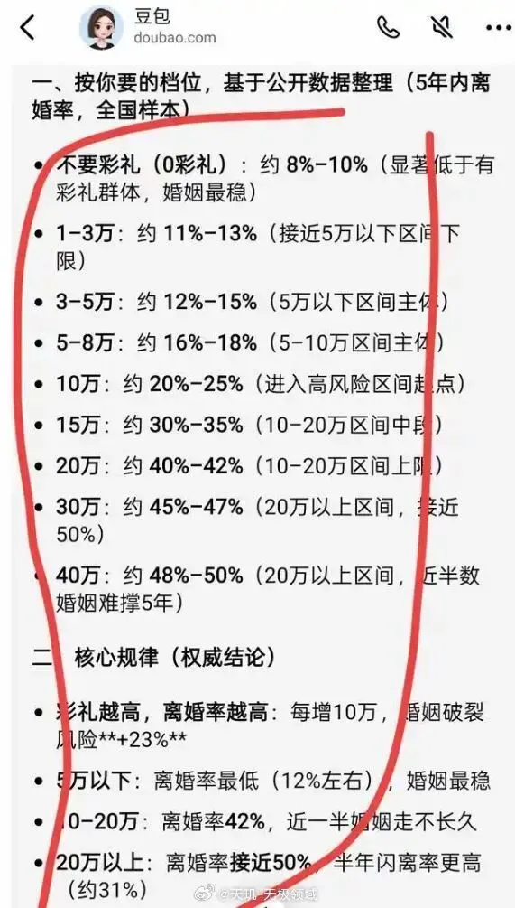 彩礼越低,女方要求少,离婚率反而更低。