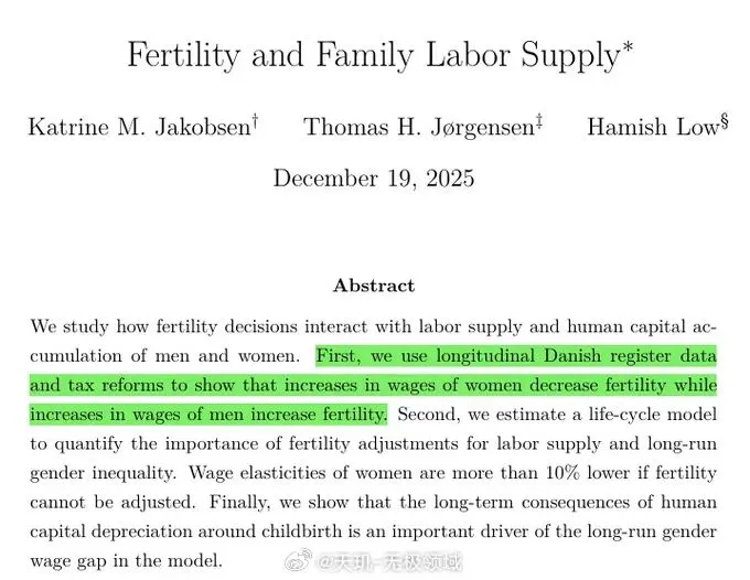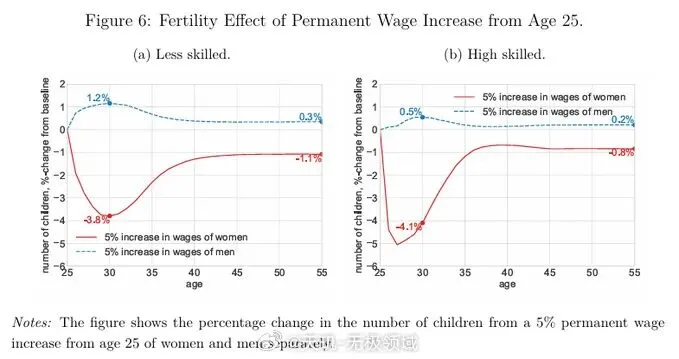2、给男性加工资,男性更愿意多生孩子。给女性加工资,会导致其不愿意生孩子。