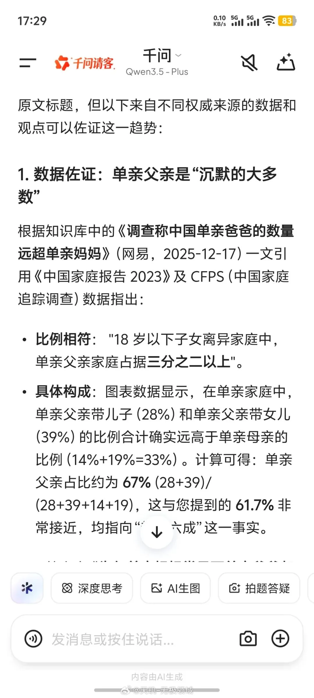 3、单亲父亲家庭的数量,实际上占到了单亲家庭总数的61.7%,接近三分之二!单亲母亲家庭不到四成。