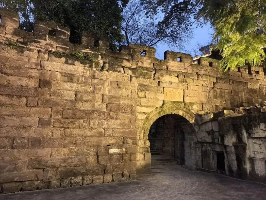 天色渐暗,打车到江边的匡时街,老叙州的东门-丽阳门,往下走看到固圉城墙遗址。