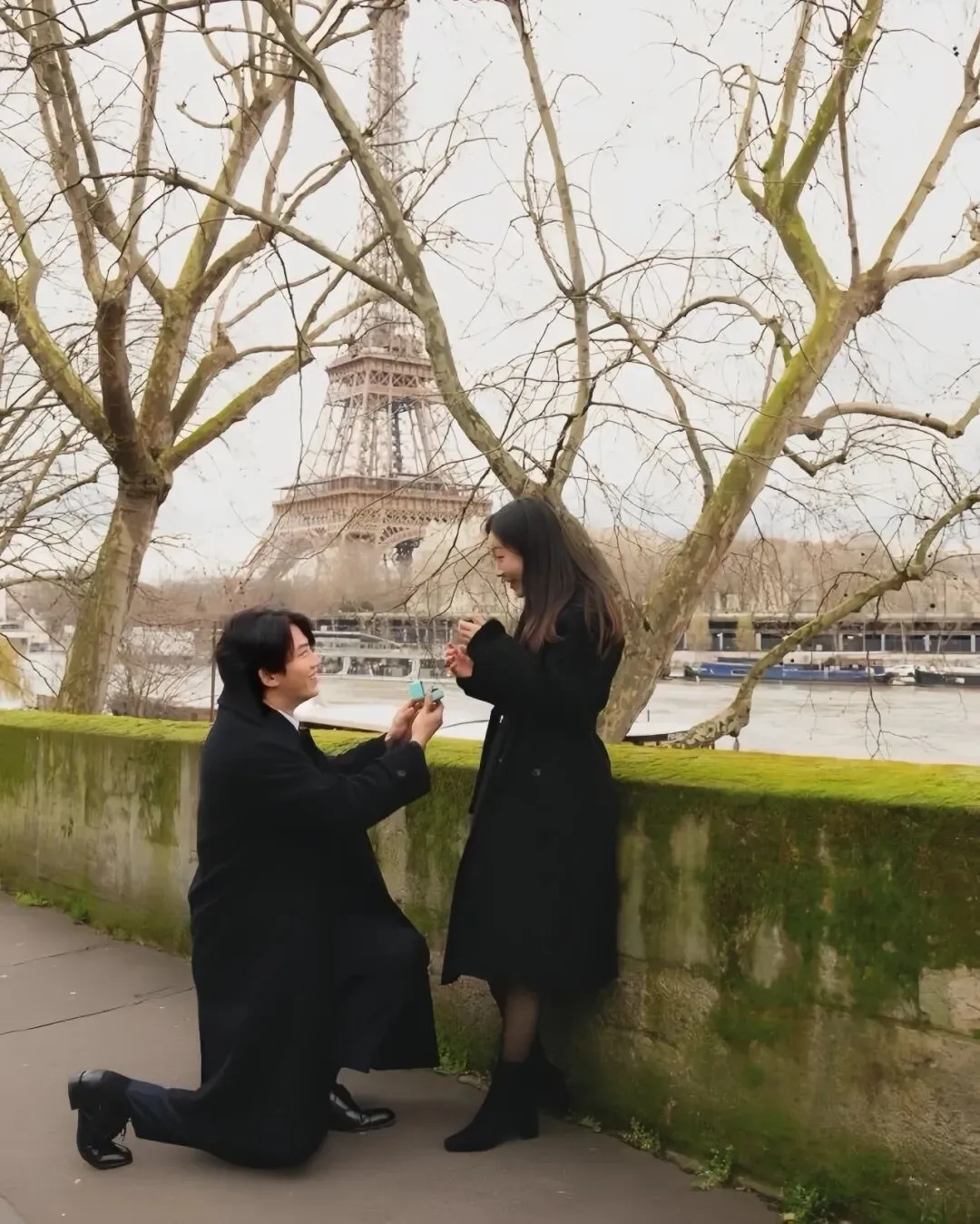 自2020年公开恋爱后,玉泽演与圈外女友一直在低调地交往。不过2024年4月某摄影博主曾公开过一组“求婚照”,一年后大家才发现照片中的男性就是玉泽演本人。照片中的玉泽演向女友单膝下跪,两人在巴黎铁塔下都露出了甜蜜而又幸福的表情。这组照片被网友扒出后,该账号已火速删除相关内容,仿佛从未发布过一样,这一举动让玉泽演“隐婚”的传闻瞬间冲上热搜榜。