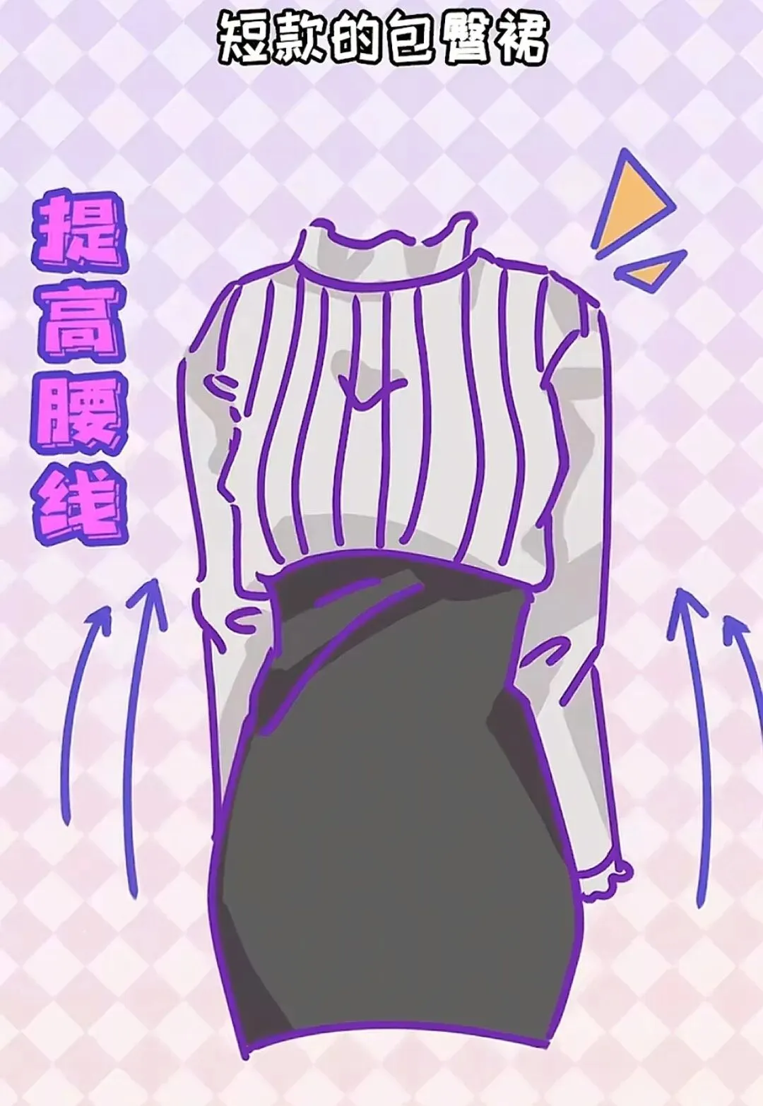 短款的包臀裙一般都是高腰设计,也能显得腿长,有提高腰线的作用。