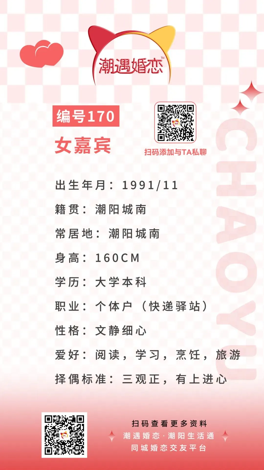 【潮遇婚恋】嘉宾:编号170号女嘉宾 · 常居潮阳城南,个体户~