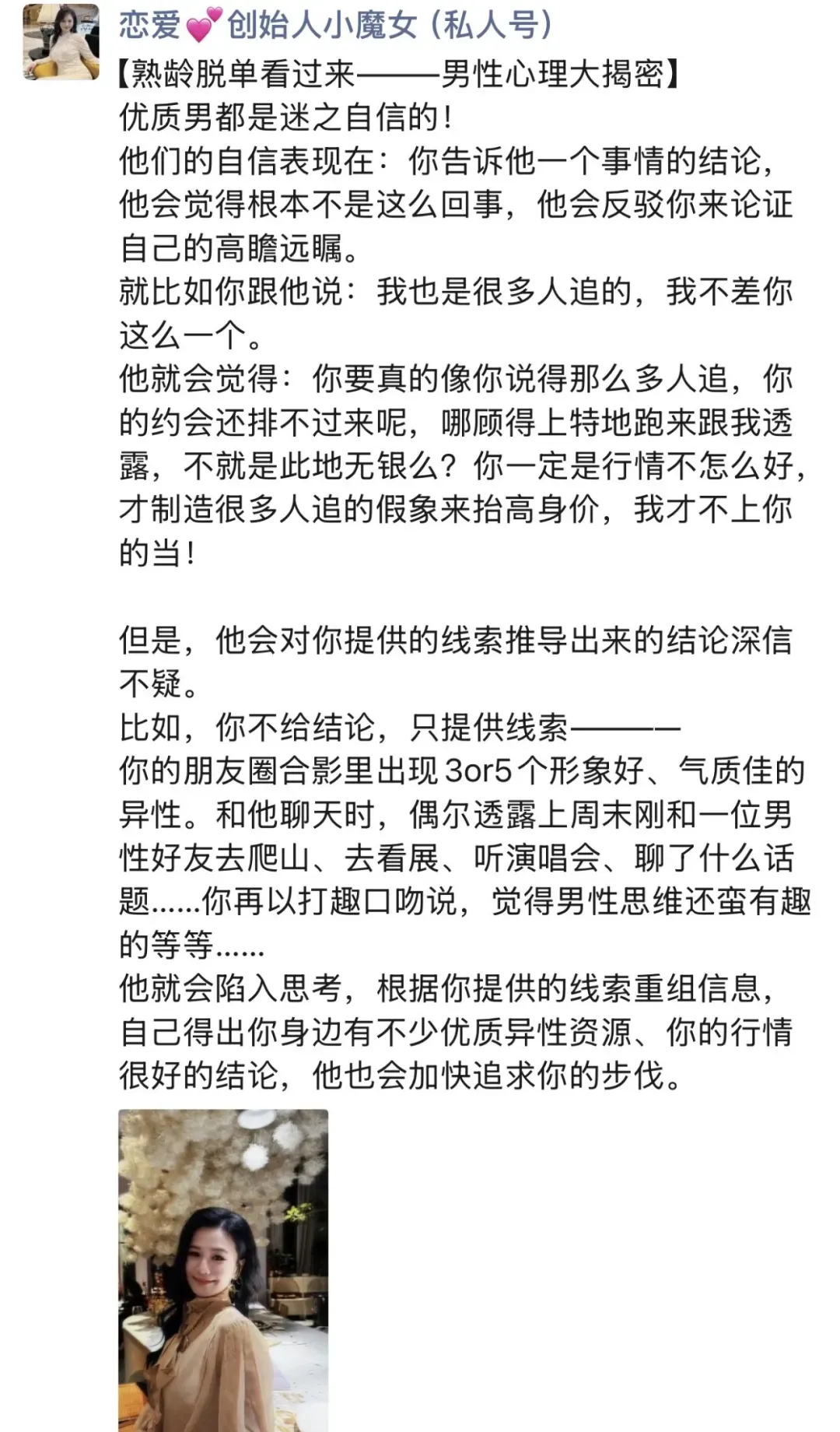 这才是老师最擅长的地方,不是教你套路男人,而是教你展开思维,成为真正让高阶男人追求的女人。