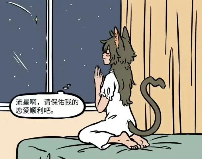 这天晚上瓦陶陶在窗外看到了流星,流星闪过的时候瓦陶陶便开始许愿,希望能够保佑自己的恋爱顺利,不知道瓦陶陶的愿望能不能实现呢?