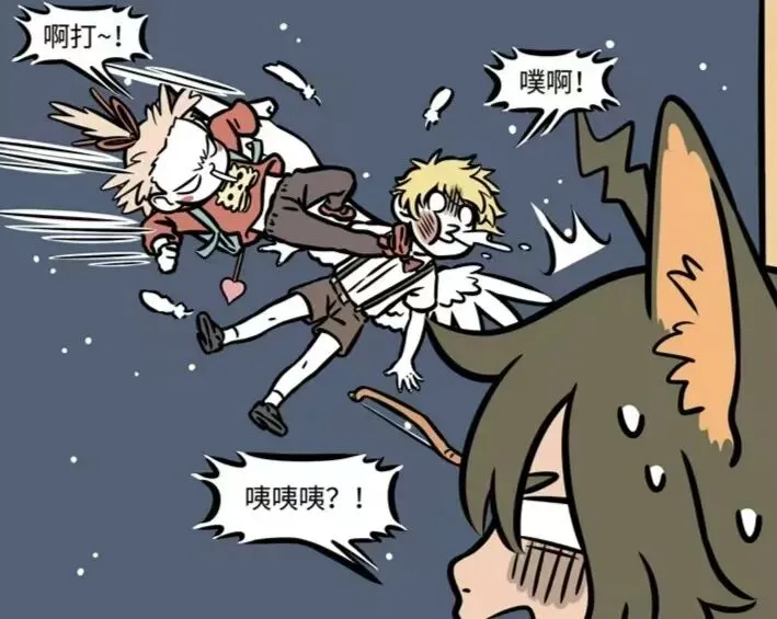 丘比特刚要跟瓦陶陶说话,下一秒月老出现,直接就将丘比特给一脚踢开,瓦陶陶看到这一幕后也是被吓坏了,看来这一单是要被月老给截胡了。