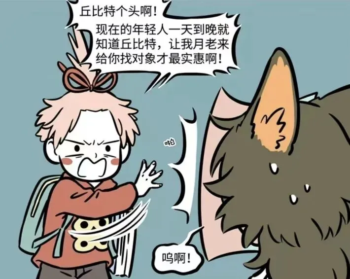 在这一话的非人哉里,瓦陶陶对着窗外的流行许愿自己的恋爱顺利,瓦陶陶刚许愿完就遇到了碰巧路过的丘比特,瓦陶陶看到丘比特后很开心,觉得自己的愿望已经实现了,只不过下一秒月老突然出现,直接将丘比特给一脚踢开,瓦陶陶看到后也是很生气,还怪月老将丘比特给踢开了,月老听了后则表示现在的年轻人就知道找丘比特,还说要对象找月老才是最正确的,接着还将自己的传单发给了瓦陶陶,瓦陶陶听月老说完之后都心动了,不知道瓦陶陶会不会找月老下单呢?
