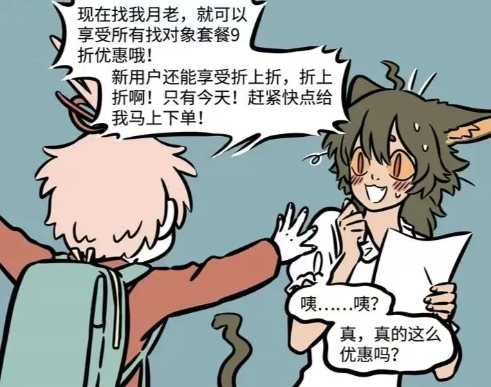 还没等瓦陶陶缓过来,月老还接着说现在下单的话甚至还有9折优惠,瓦陶陶都被月老说得都有点心动了,看来这一单月老算是抢单成功了。