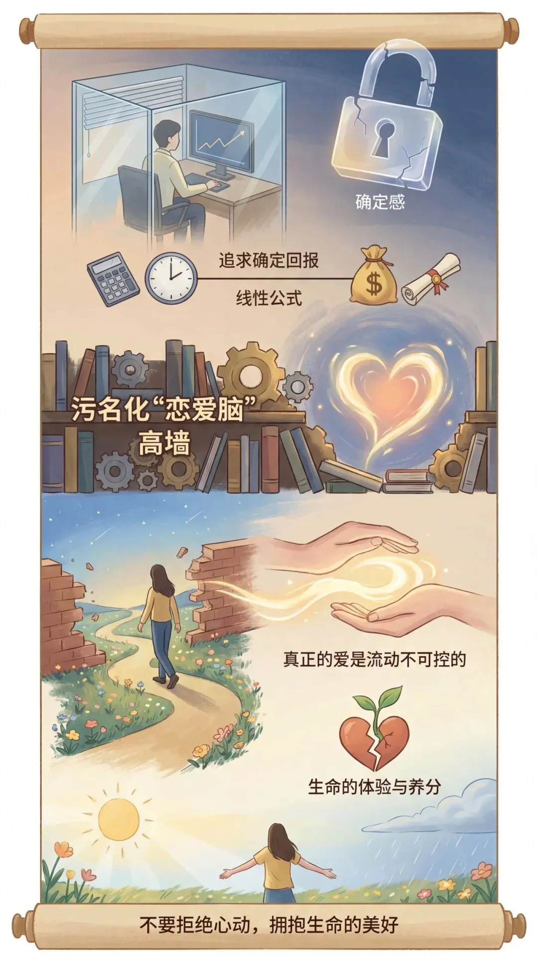 我们之所以如此恐惧心动、污名化“恋爱脑”,说到底,是我们太迷恋“确定感”带来的虚假安全感了。