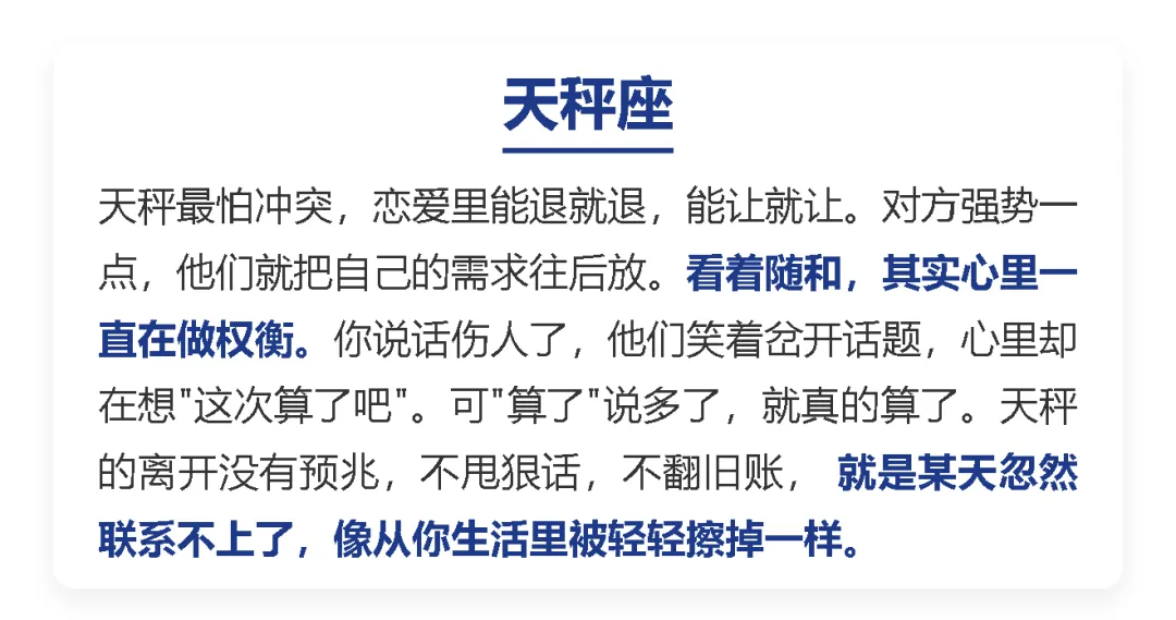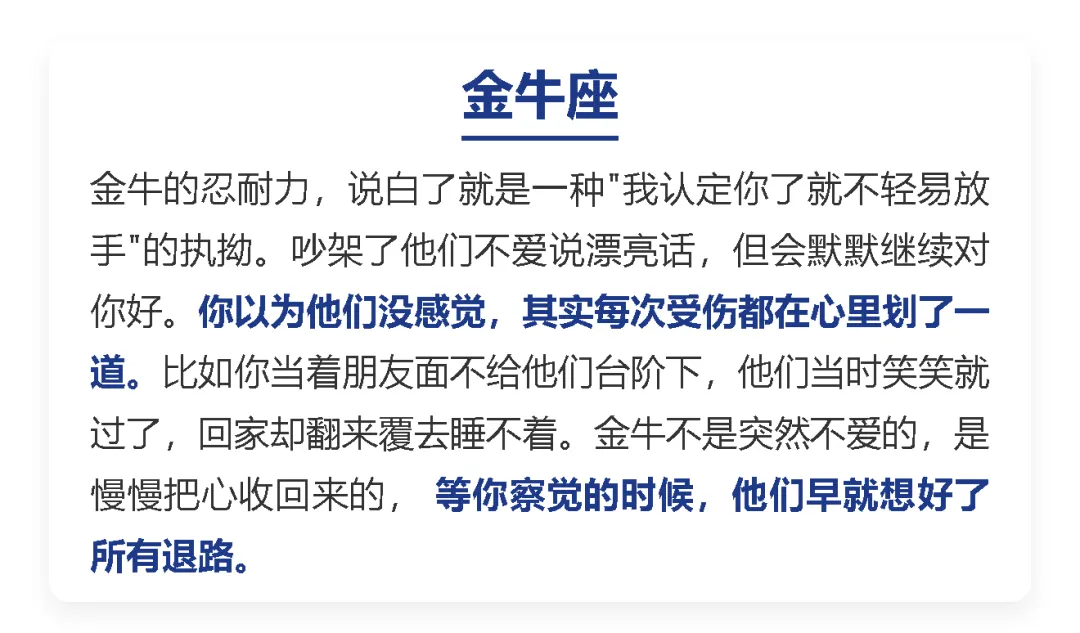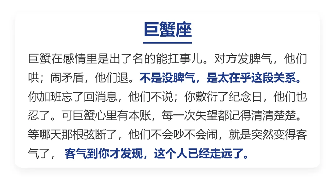 感情.里有.一种人,不是不会.生气,不是.没有脾气,只是习.惯了把.委屈往肚.子里咽。他们总觉.得再忍忍.就好.了,再让一步.对方就能.明白。可偏.偏,这种人一.旦攒.够了失望,走得比谁.都干脆,连回头.的机.会都不给.你。今天咱.们就来聊.聊,恋爱里.最能忍、但忍.到极限就.直接.消失的三.个星.座。